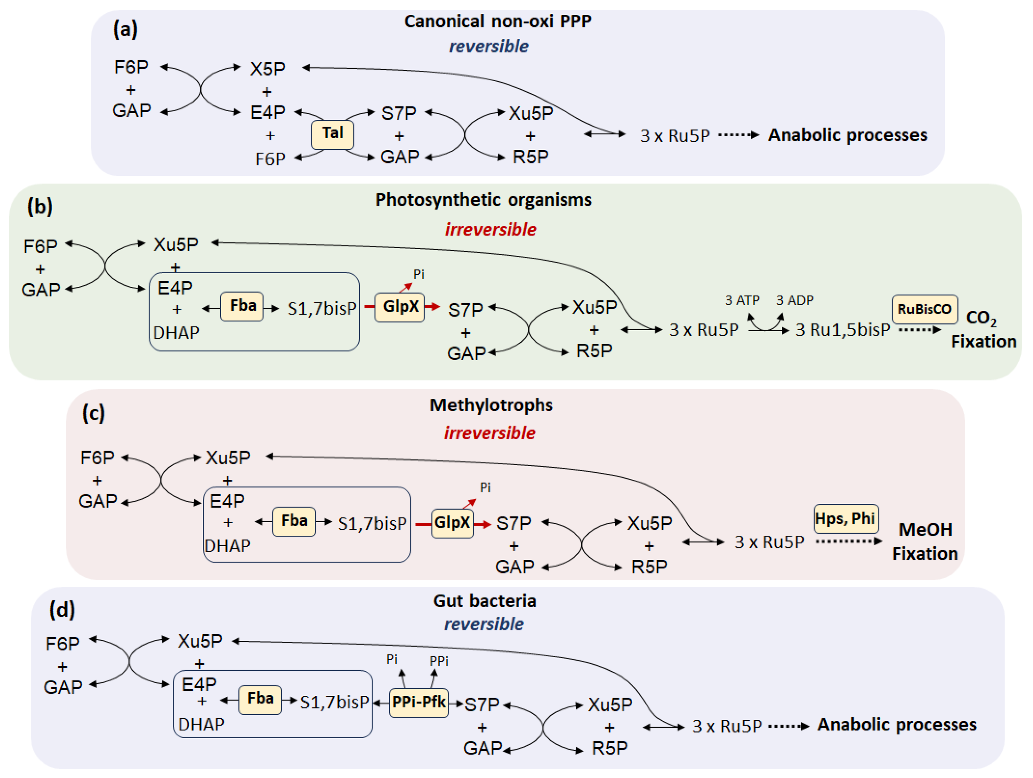 - Reizer, J.; Reizer, A.; Saier, M.H. Is the Ribulose Monophosphate Pathway Widely Distributed in Bacteria? Microbiology 1997, 143, 2519–2520. [Google Scholar] [CrossRef] [PubMed][Green Version]