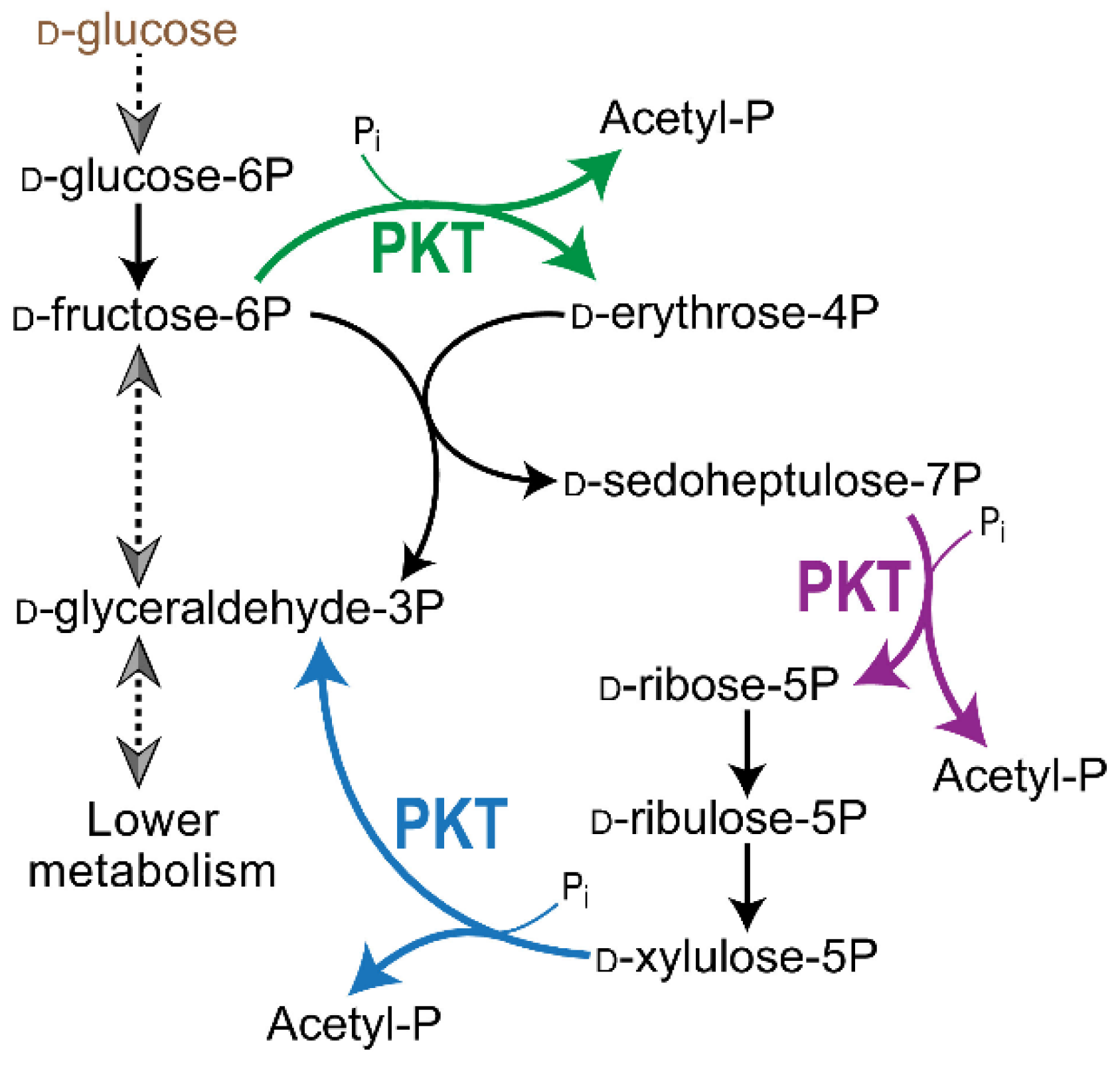 - Garschagen, L.S.; Franke, T.; Deppenmeier, U. An Alternative Pentose Phosphate Pathway in Human Gut Bacteria for the Degradation of C5 Sugars in Dietary Fibers. FEBS J. 2021, 288, 1839–1858. [Google Scholar] [CrossRef] [PubMed]