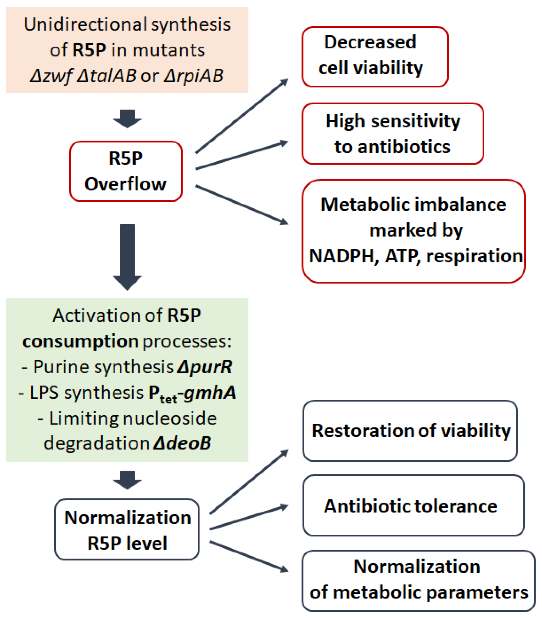 Biosynthesis of Ribose-5-Phosphate—Metabolic Regulator of Escherichia coli Viability