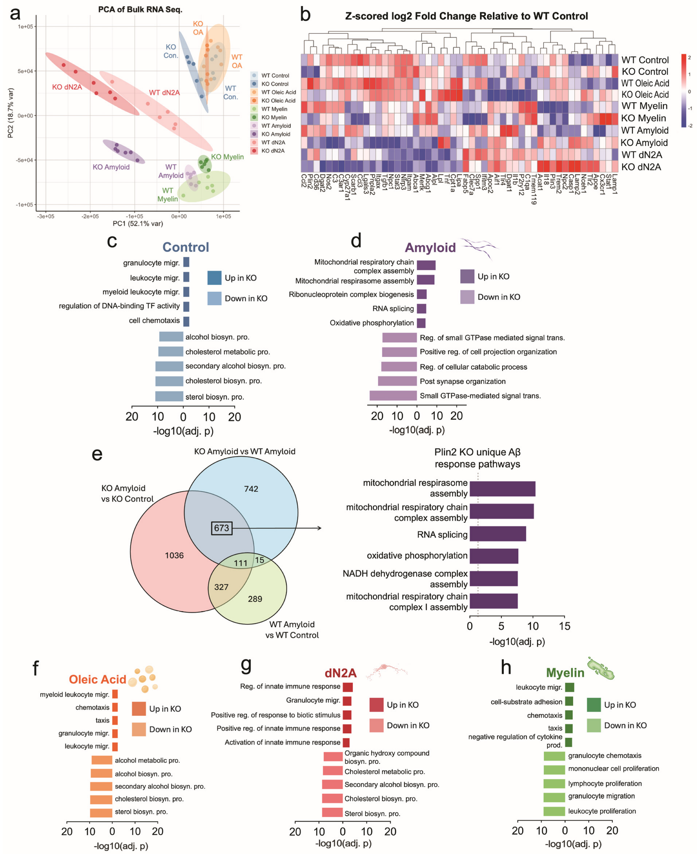- Transcriptomic, bioenergetic, and lipidomic analyses reveal that loss of Plin2 reprograms microglial metabolism toward reduced TAG storage and improved mitochondrial resilience.