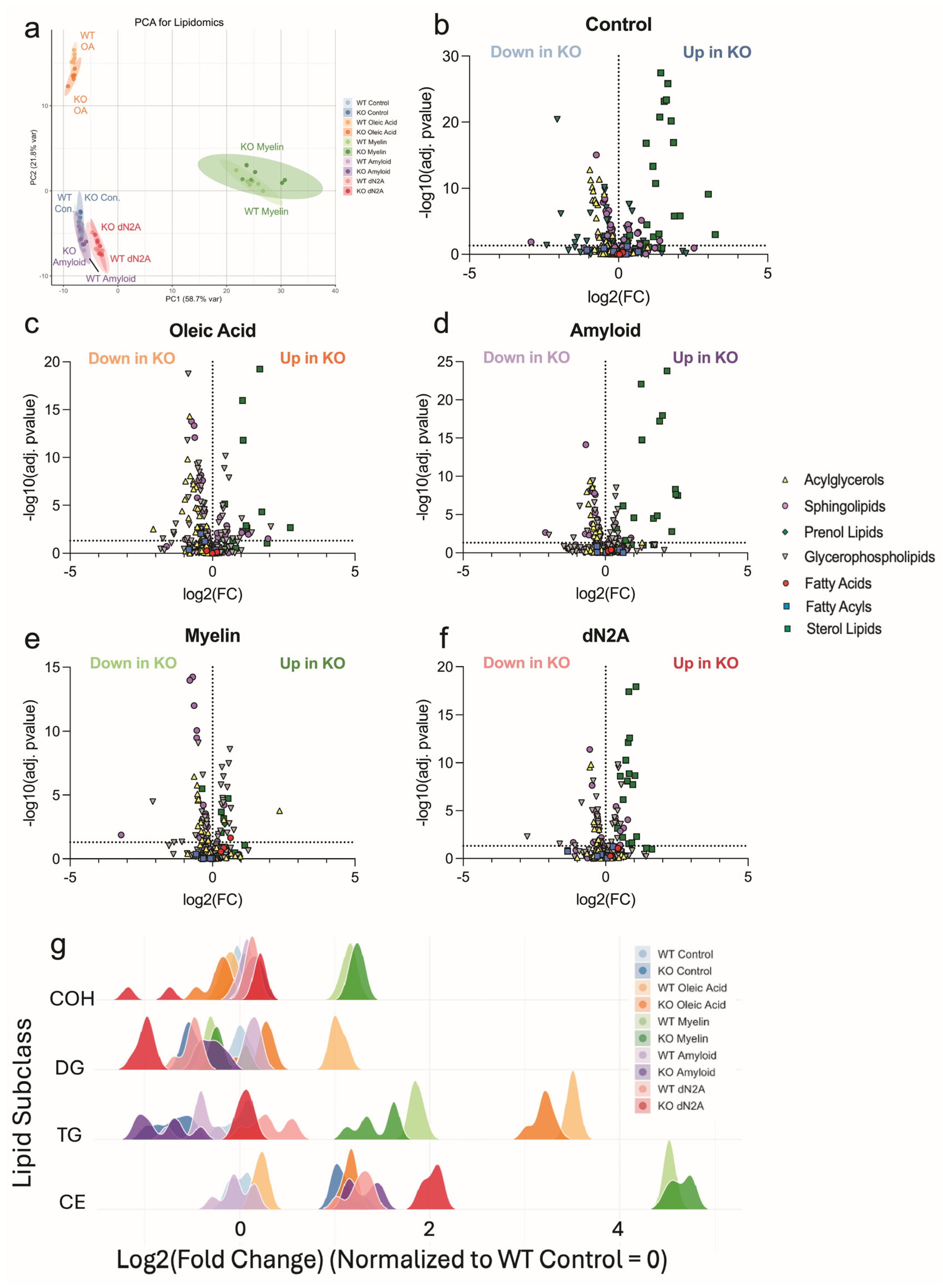 - Friday, C.M.; Stephens, I.O.; Smith, C.T.; Lee, S.; Satish, D.; Devanney, N.A.; Cohen, S.; Morganti, J.M.; Gordon, S.M.; Johnson, L.A. APOE4 reshapes the lipid droplet proteome and modulates microglial inflammatory responses. Neurobiol. Dis. 2025, 212, 106983. [Google Scholar] [CrossRef]