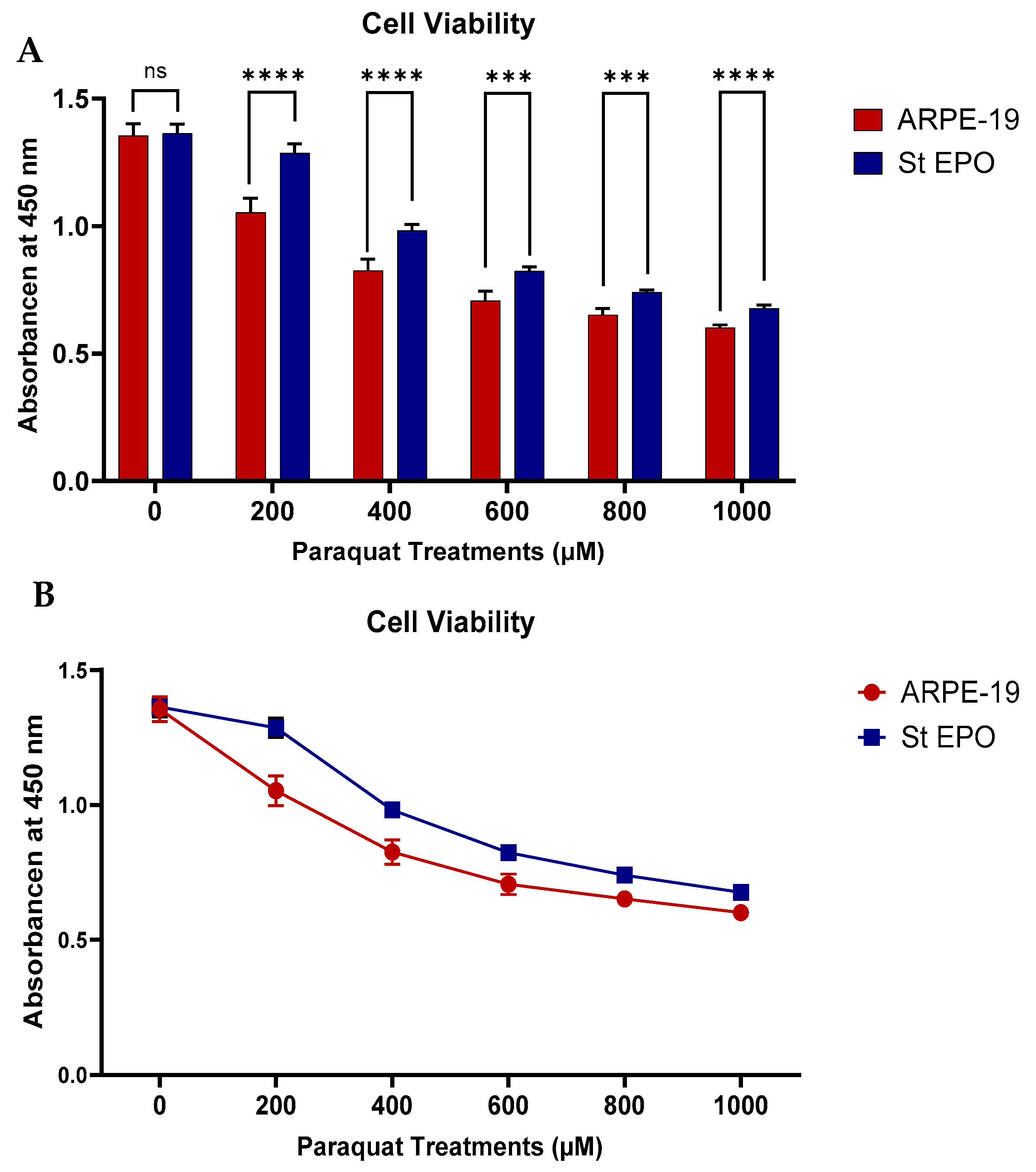 Alam, J.; Ponnam, A.; Souvangini, A.; Gopi, S.; Ildefonso, C.J.; Biswal, M.R. EPO-R76E Enhances Retinal Pigment Epithelium Viability Under Mitochondrial Oxidative Stress Induced by Paraquat. Cells 2025, 14, 1794. https://doi.org/10.3390/cells14221794
