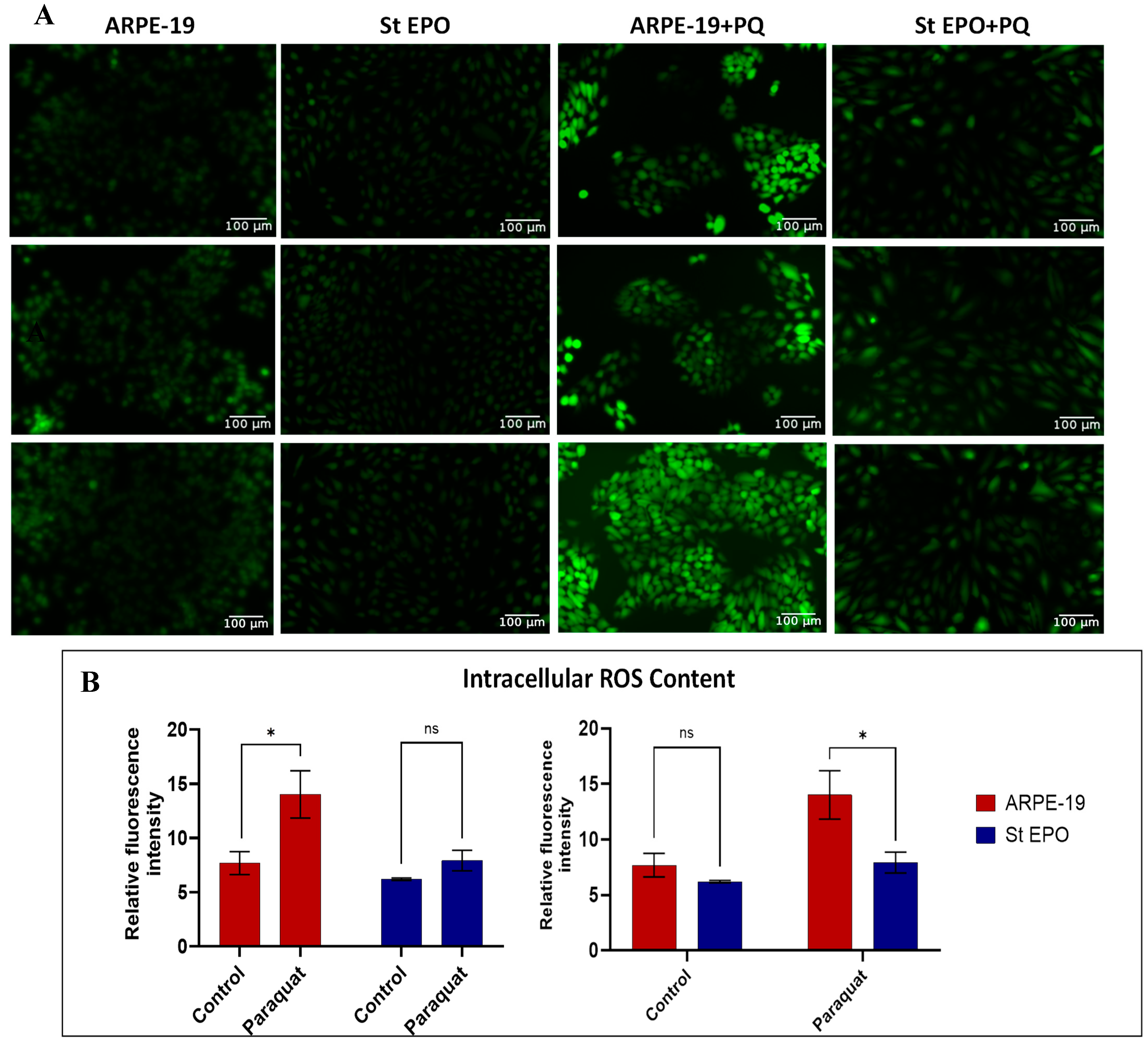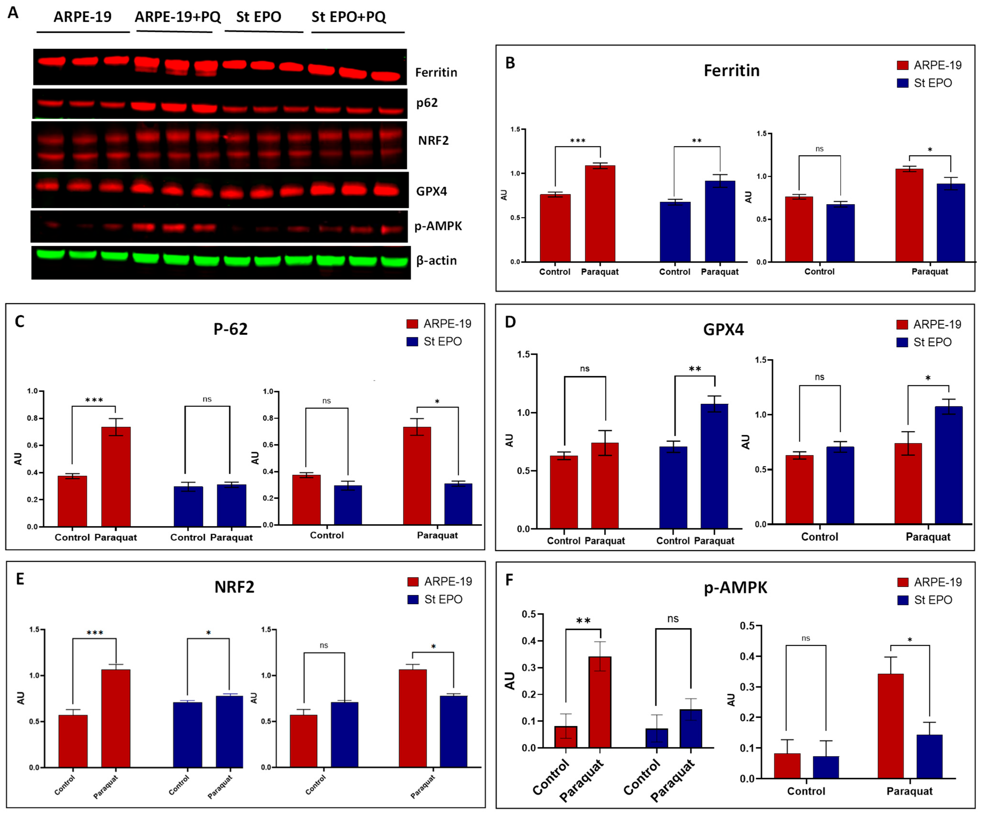 Chicago/Turabian StyleAlam, Jemima, Alekhya Ponnam, Arusmita Souvangini, Sundaramoorthy Gopi, Cristhian J. Ildefonso, and Manas R. Biswal. 2025. "EPO-R76E Enhances Retinal Pigment Epithelium Viability Under Mitochondrial Oxidative Stress Induced by Paraquat" Cells 14, no. 22: 1794. https://doi.org/10.3390/cells14221794