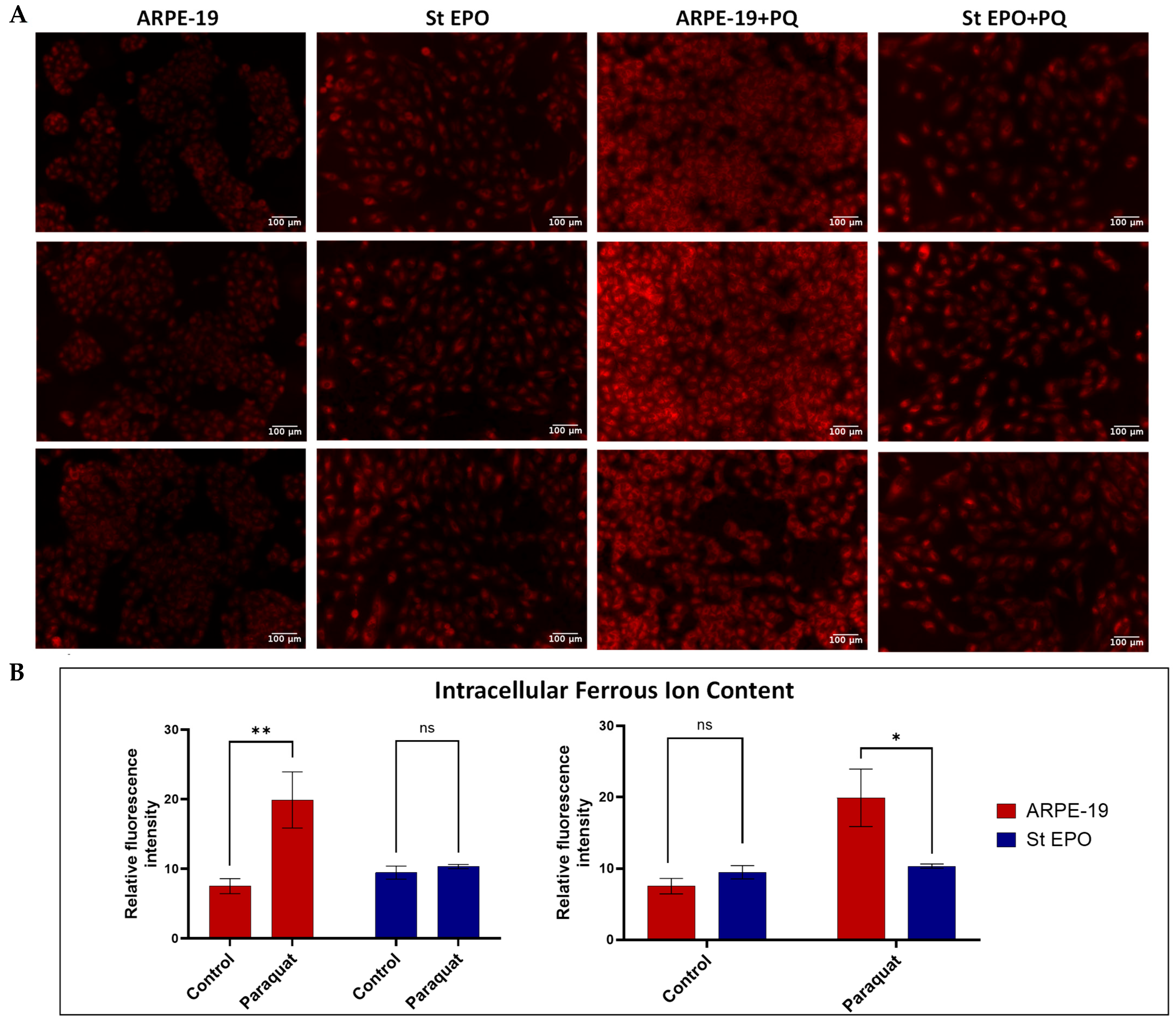 3.3. Impact of EPO-R76E on Intracellular Ferrous Ion Content