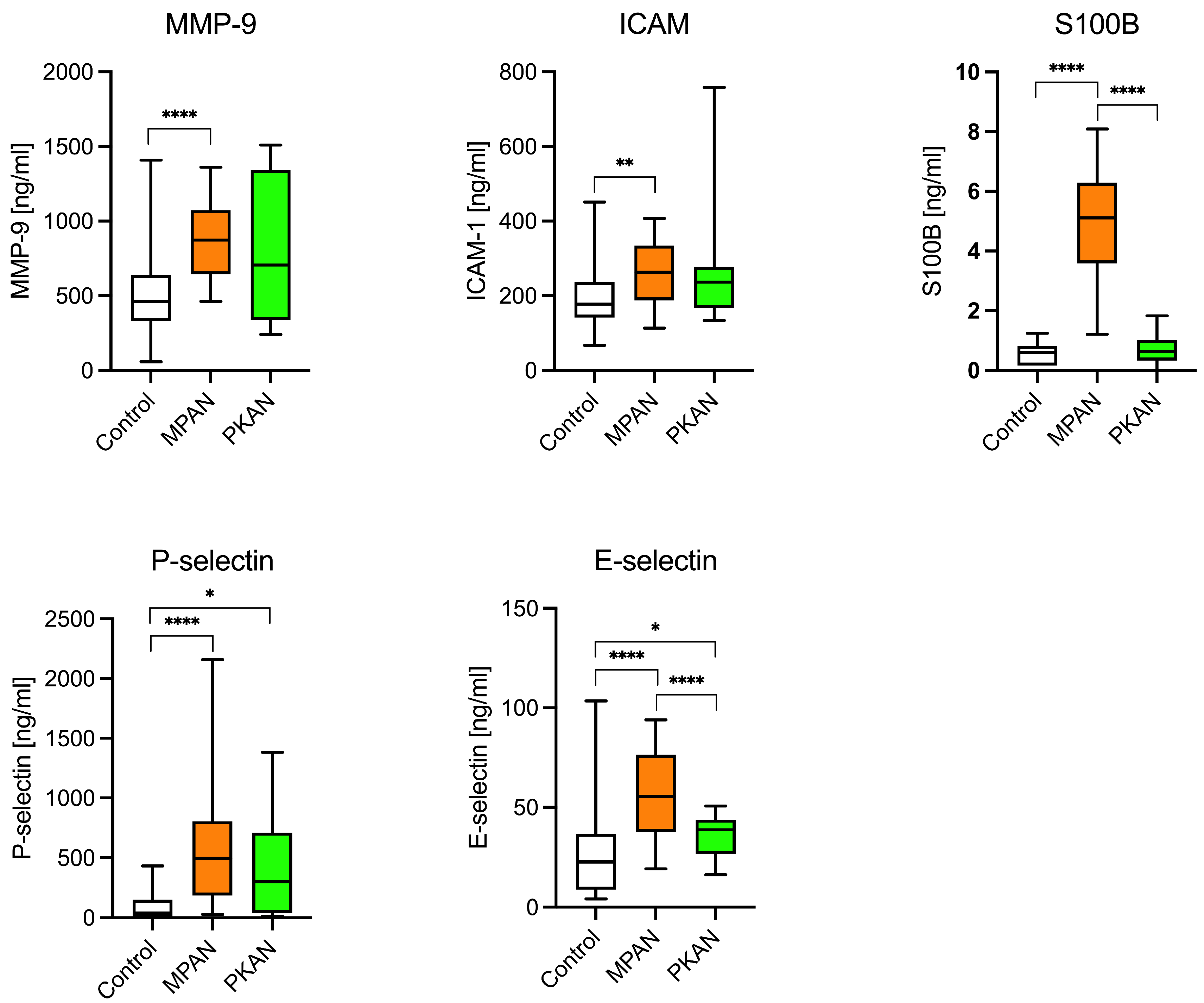 - Despite clinical and pathological similarities between MPAN and PKAN, only MPAN patients showed elevated biomarkers indicating inflammation and blood–brain barrier disruption.
