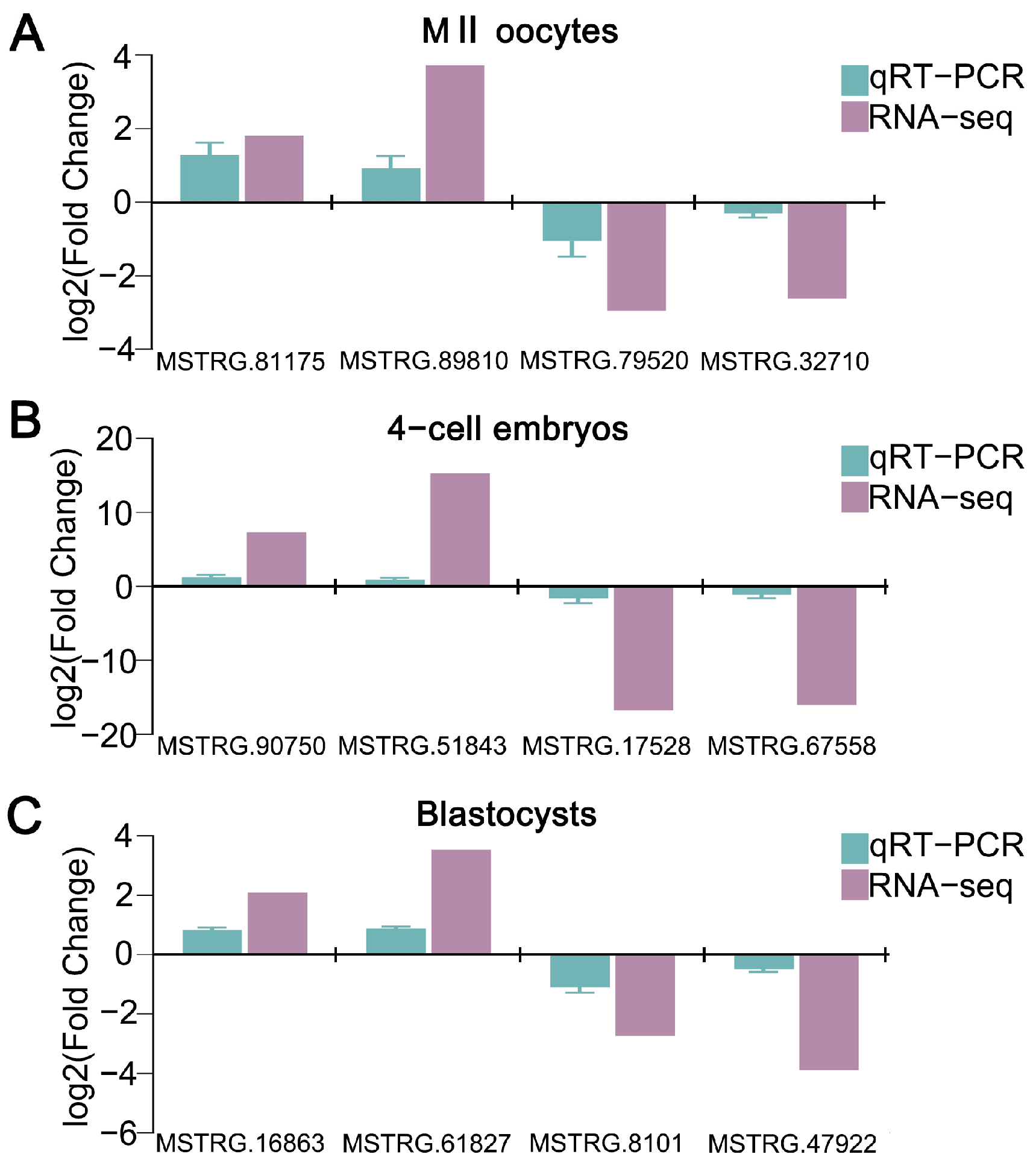 - Cao, S.; Han, J.; Wu, J.; Li, Q.; Liu, S.; Zhang, W.; Pei, Y.; Ruan, X.; Liu, Z.; Wang, X.; et al. Specific gene-regulation networks during the pre-implantation development of the pig embryo as revealed by deep sequencing. BMC Genom. 2014, 15, 4. [Google Scholar] [CrossRef]