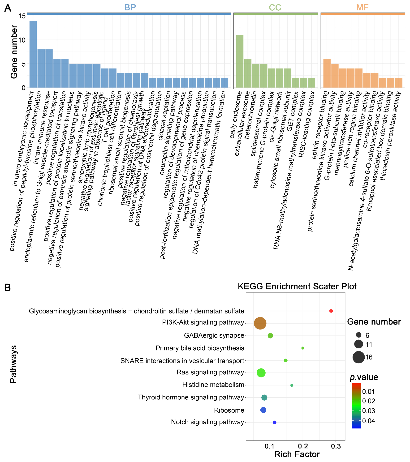 3.6. Prediction of Target Genes for DELs in Parthenogenetic Blastocysts Derived from Vitrified GV Stage Oocytes and Enrichment Analysis