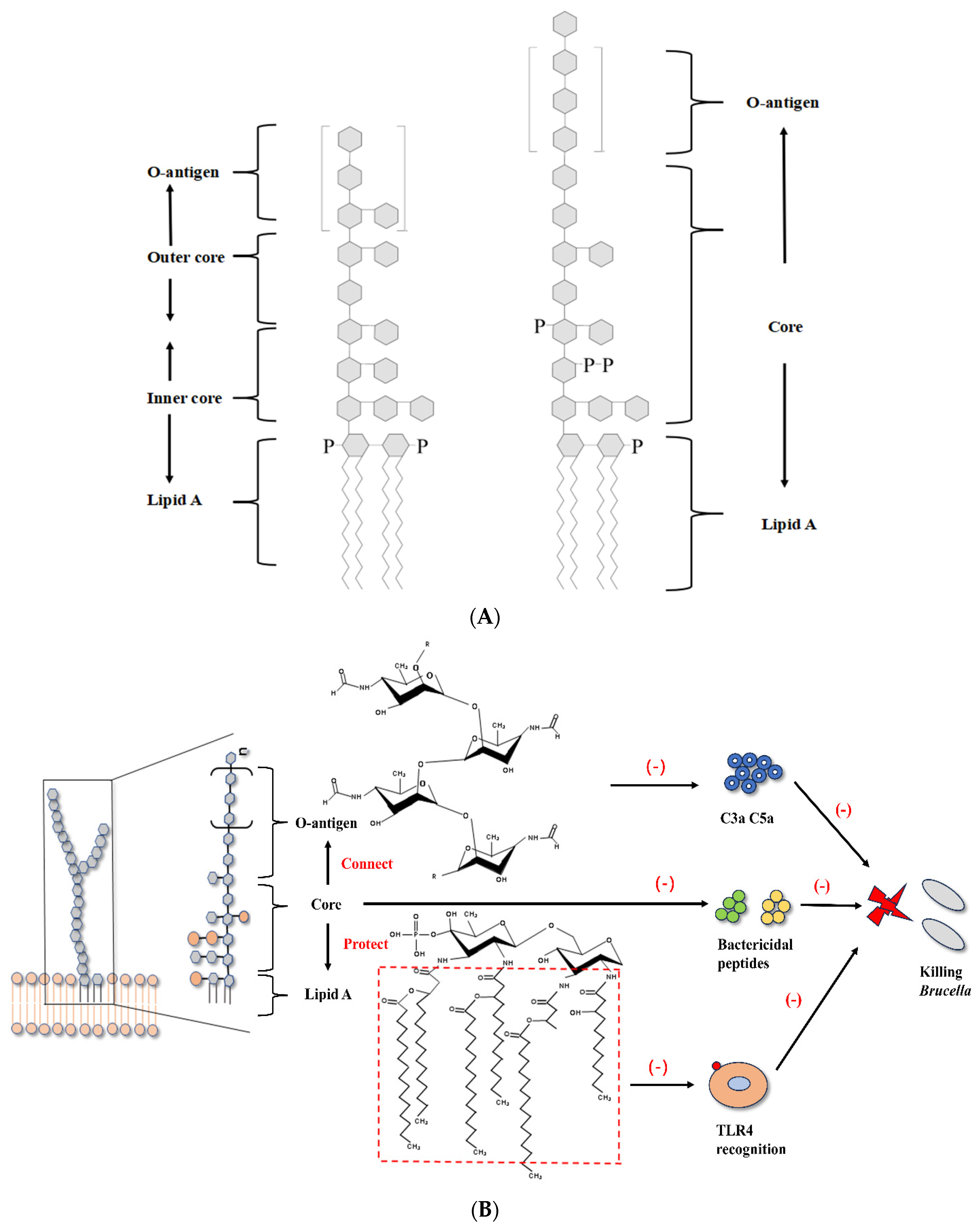 - Cardoso, P.G.; Macedo, G.C.; Azevedo, V.; Oliveira, S.C. Brucella spp. noncanonical LPS: Structure, biosynthesis, and interaction with host immune system. Microb. Cell Factories 2006, 5, 13. [Google Scholar] [CrossRef]