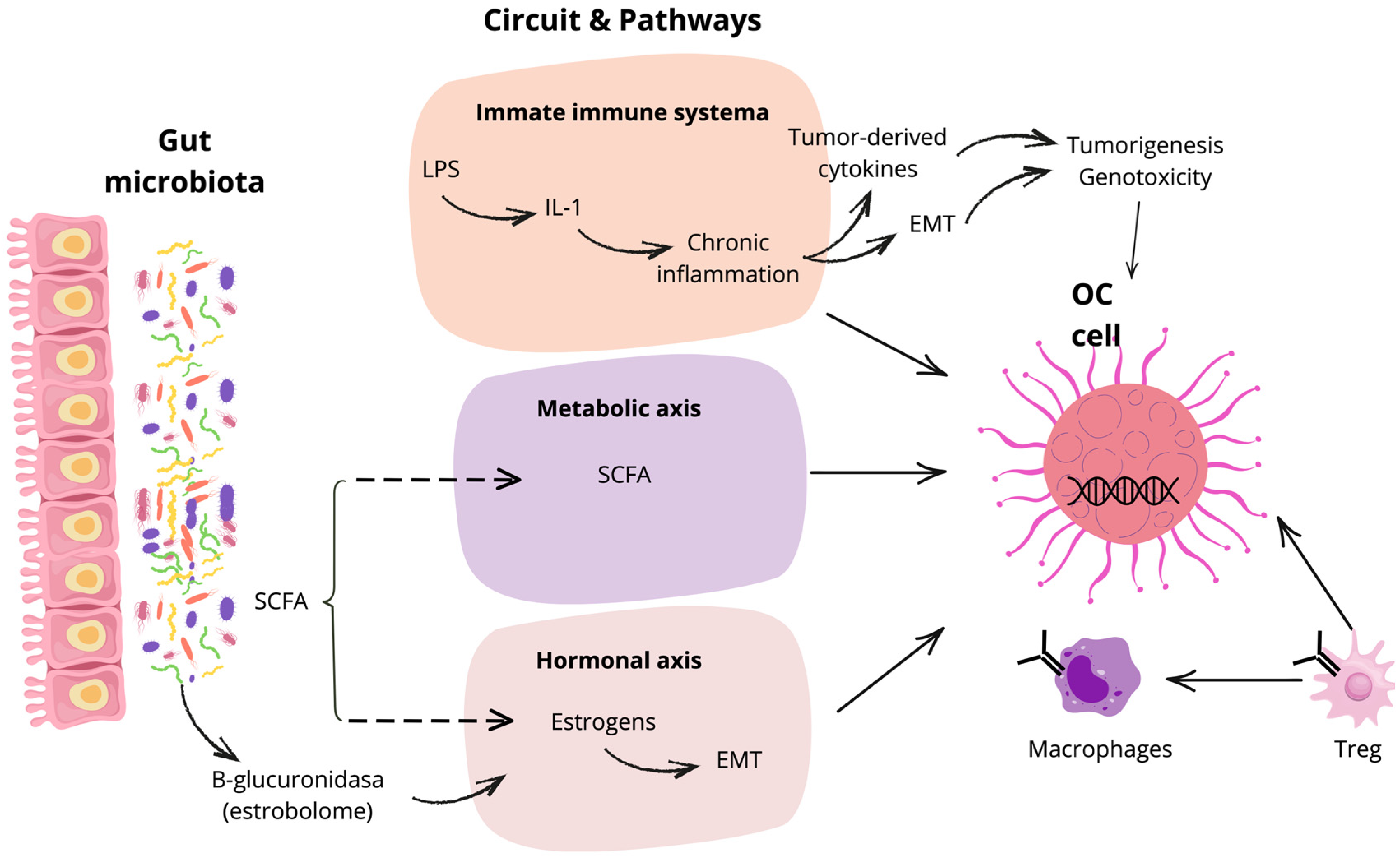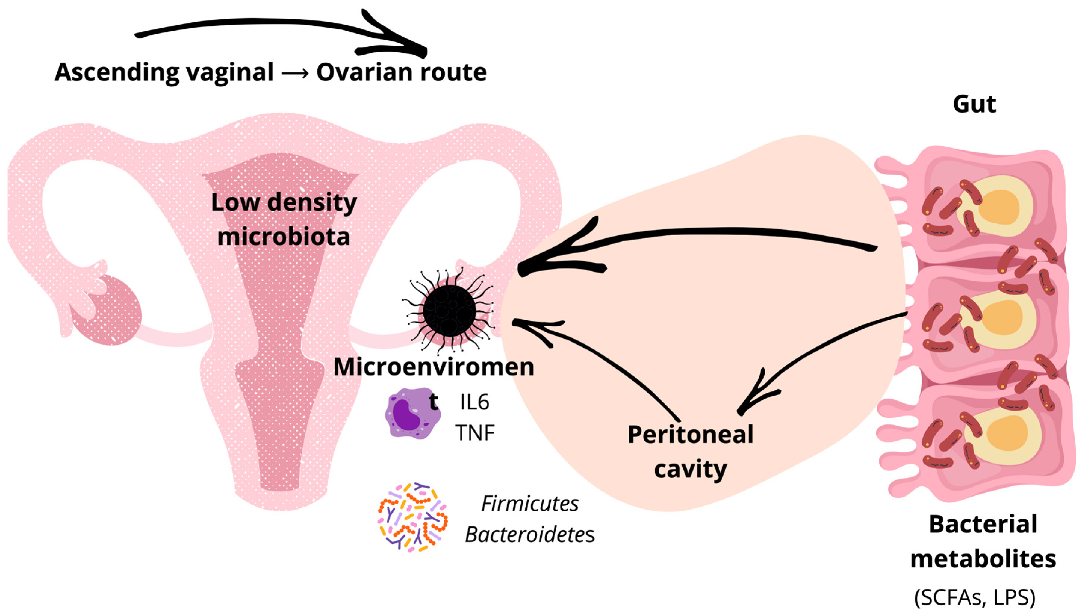 2. Mechanistic Framework: Microbiota–Host Crosstalk in Ovarian Carcinogenesis