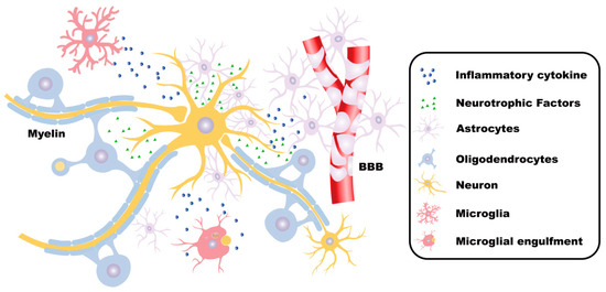 Microglia, the intrinsic immune cells of the CNS, are distributed extensively throughout the brain. The primary function of microglia is to sense environmental changes, sustain physiological homeostasis, and defend against harmful agents [16,17].