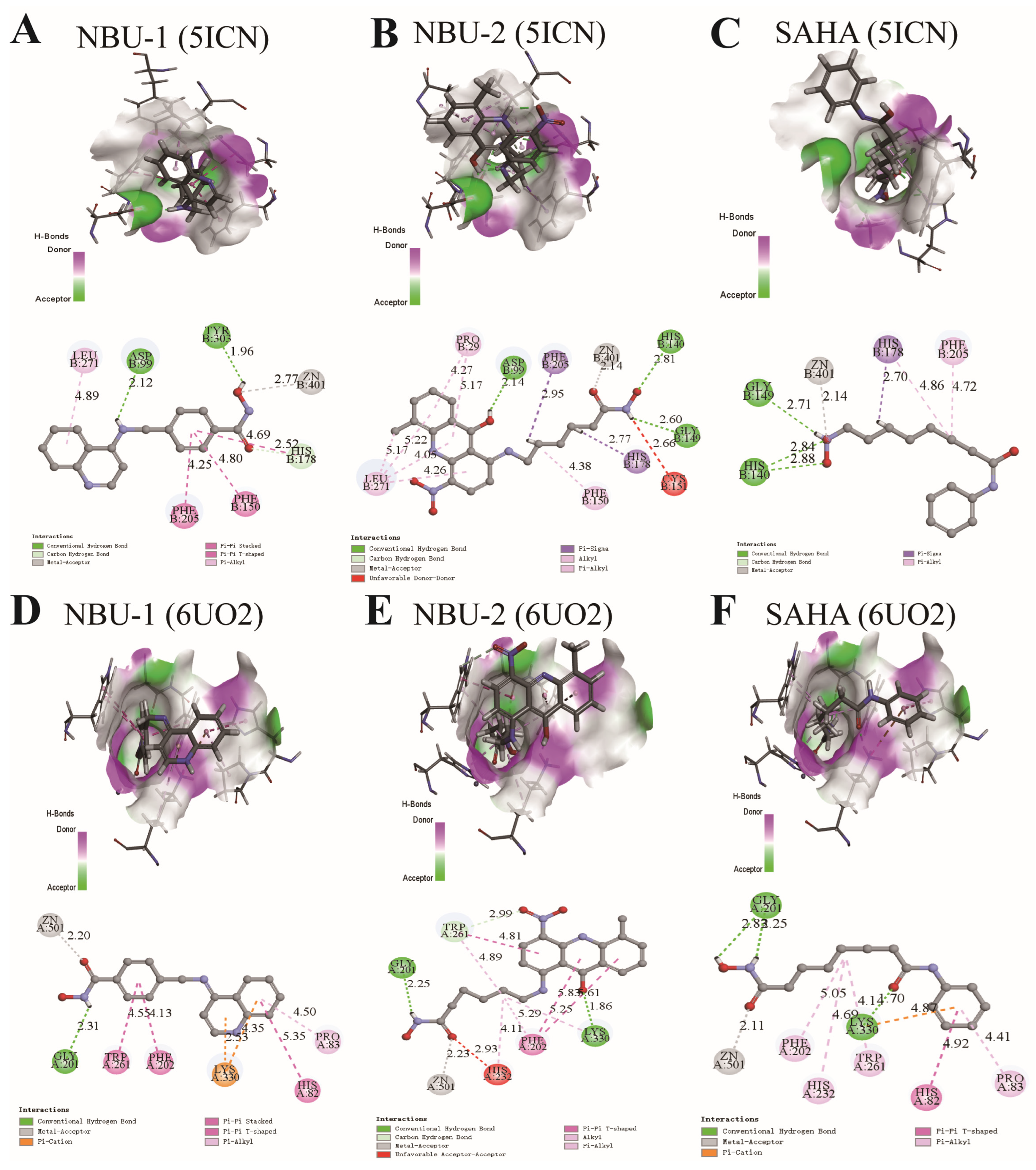 3.3. Binding Modes of NBU-1 and NBU-2 with Protein HDAC1/6