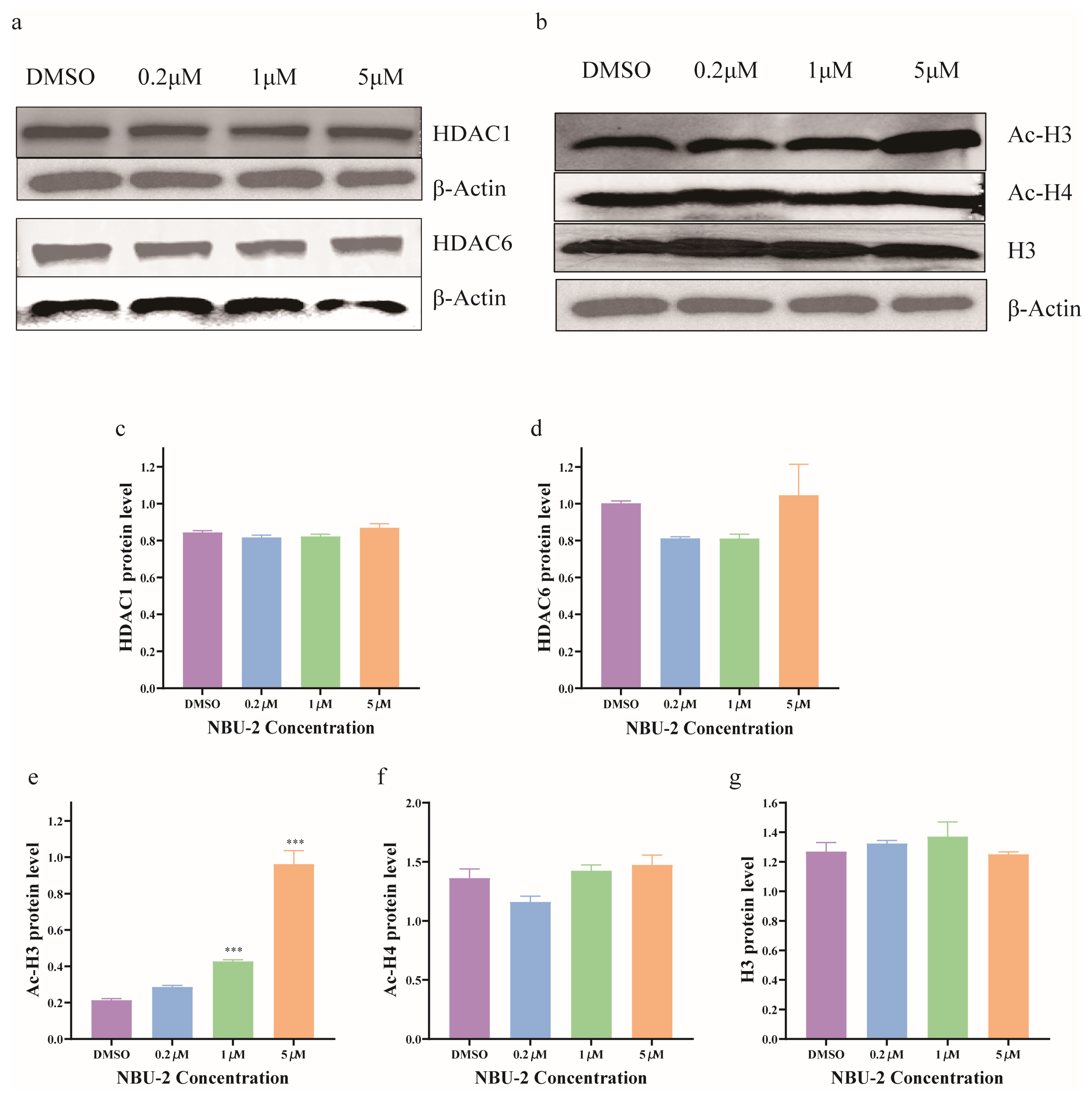 3.6. The Presence of NBU-2 Affected the Level of Histone Acetylation