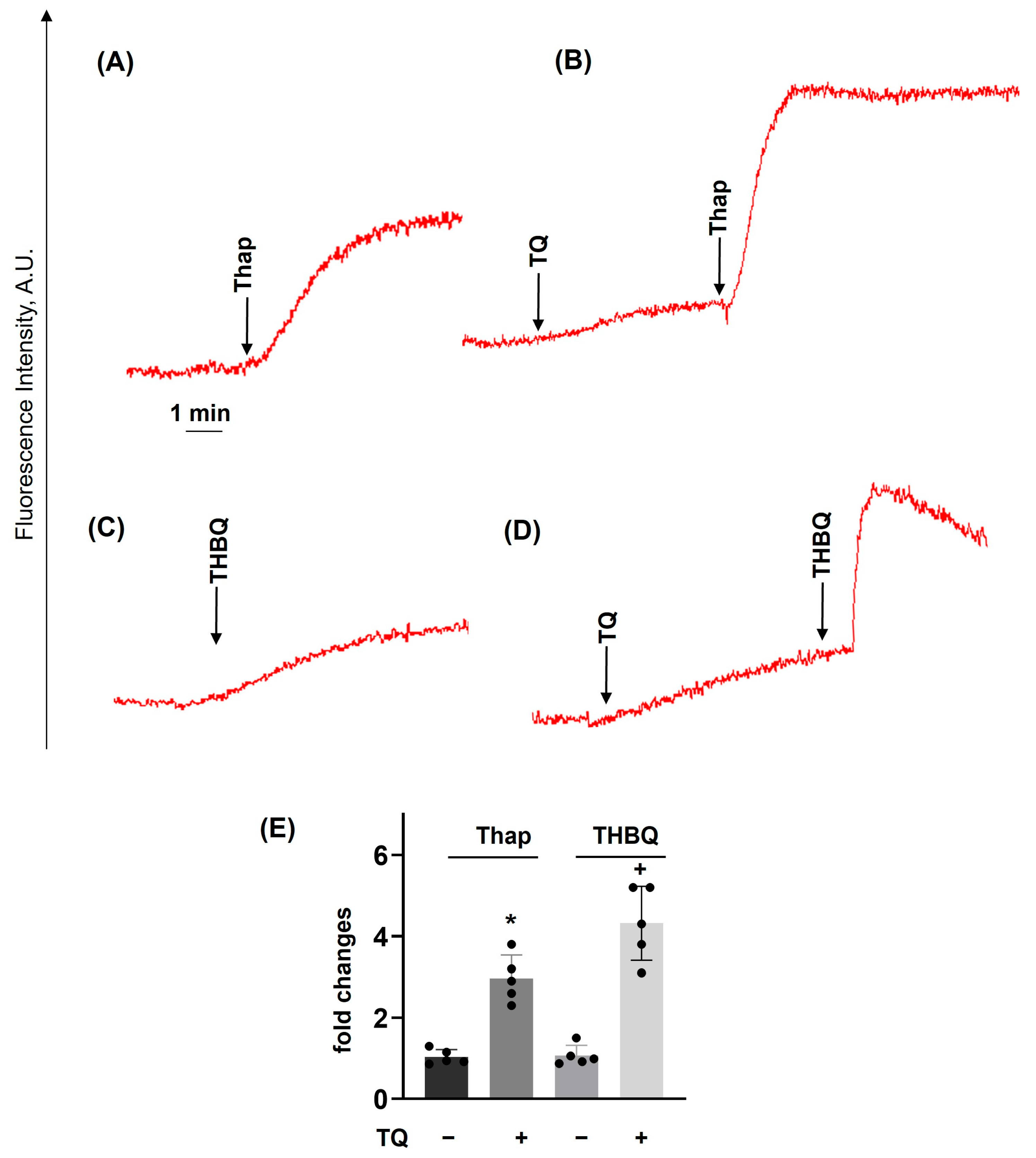 3.3. TQ Potentiated the Effects of Thapsigargin and THBQ
