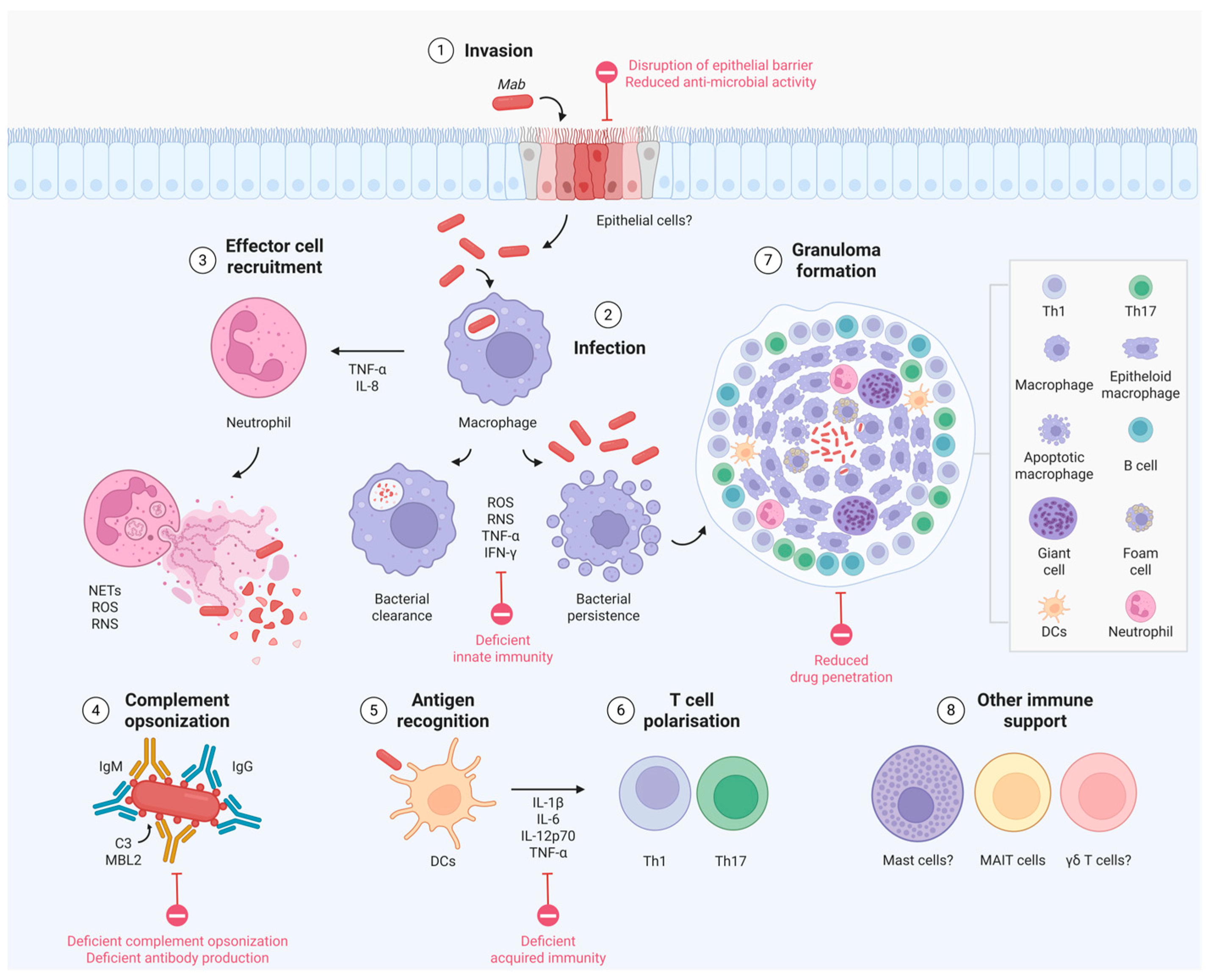 Mendoza-Trujillo, I.; Diez-Echave, P.; Tontini, C.; Bulfone-Paus, S. The Crosstalk Between Mycobacterium abscessus and Immune Cells: Exploring Novel Interaction Modalities. Cells 2025, 14, 1829. https://doi.org/10.3390/cells14221829