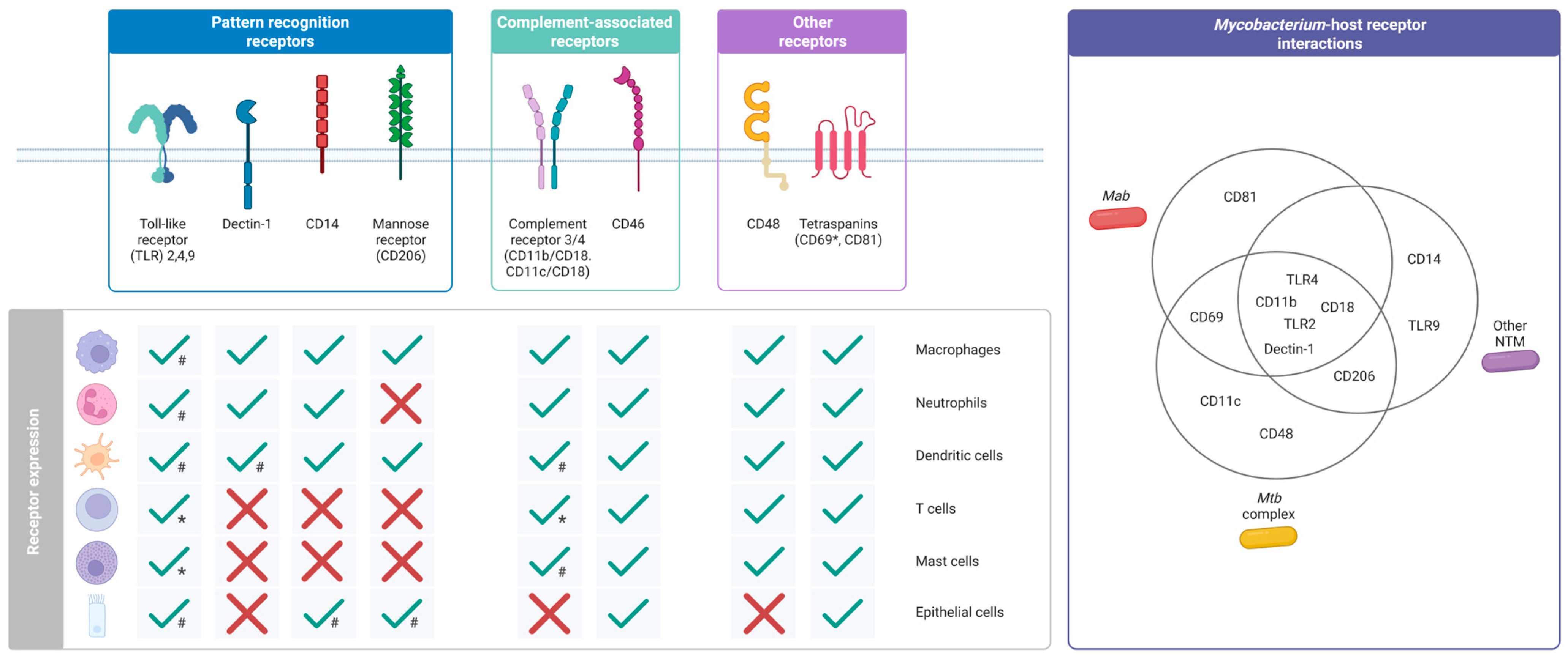 | Receptor Protein | Receptor Family | Type of Study | Mycobacterial Species | Immune Response Involved | Ref. |