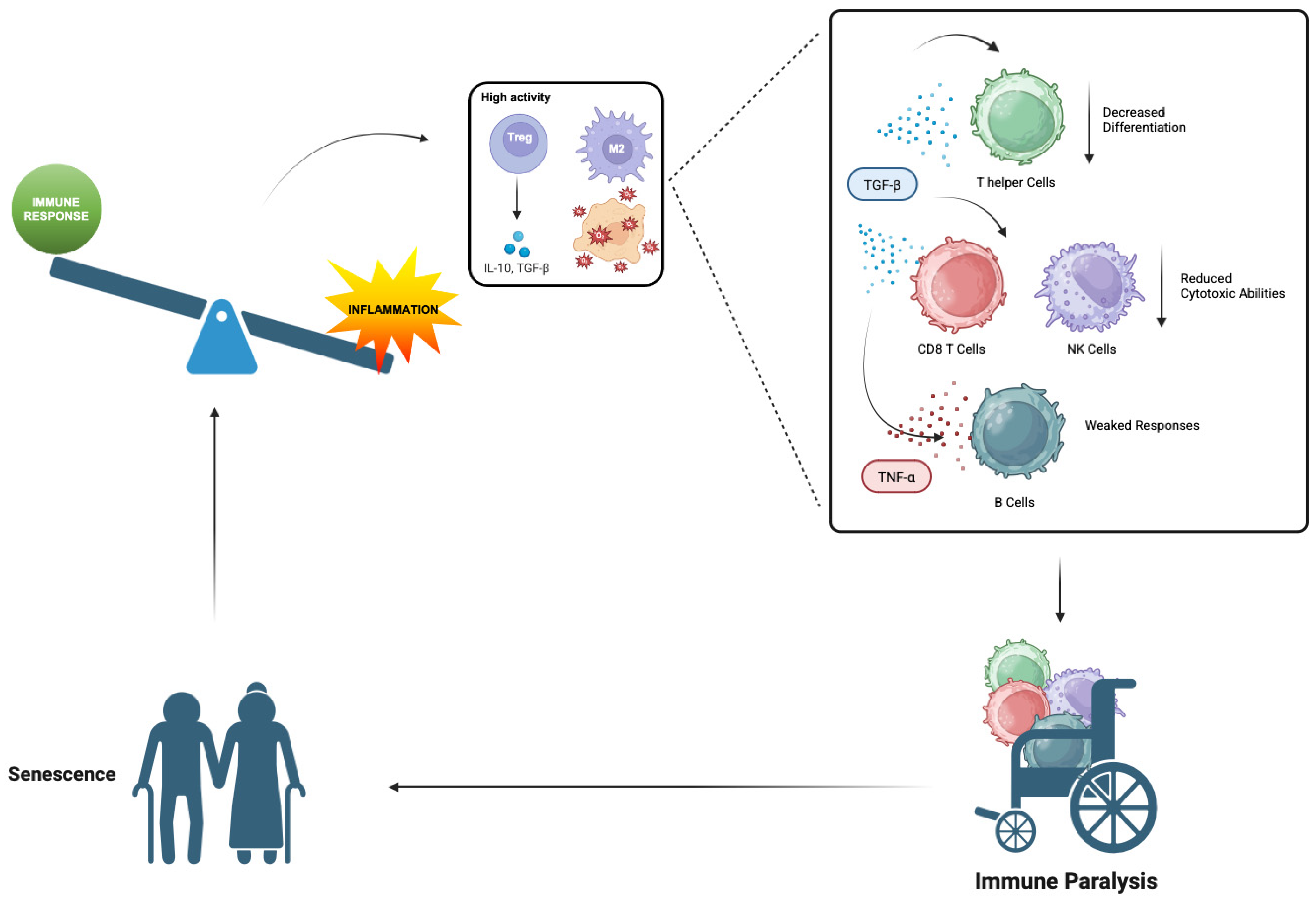 - Inflammaging and immunosenescence are tightly interconnected processes that drive the onset and progression of major age-related diseases.