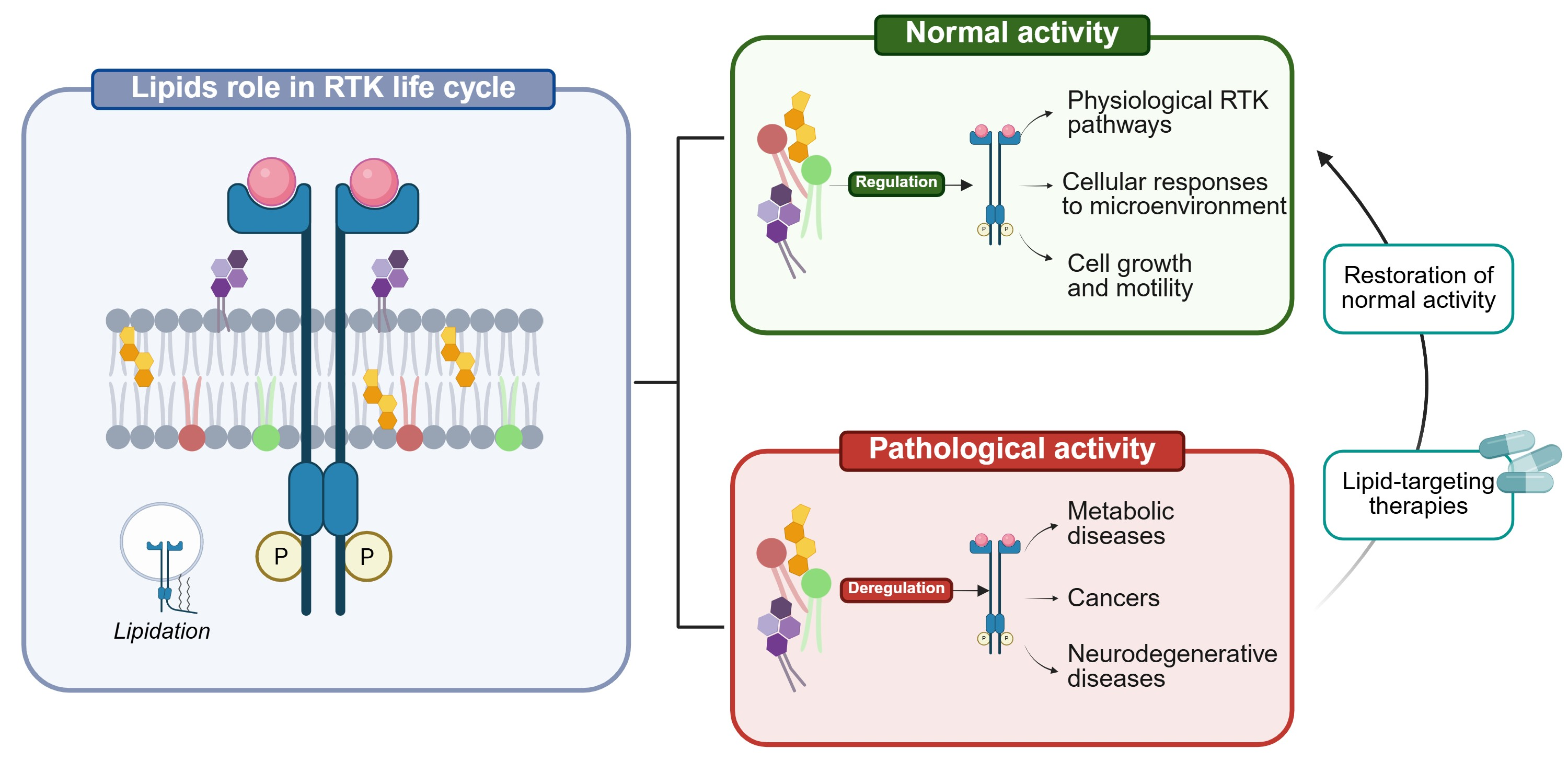 - Specific lipid–protein interactions tightly regulate RTKs’ activity and function in physiological and pathological contexts.