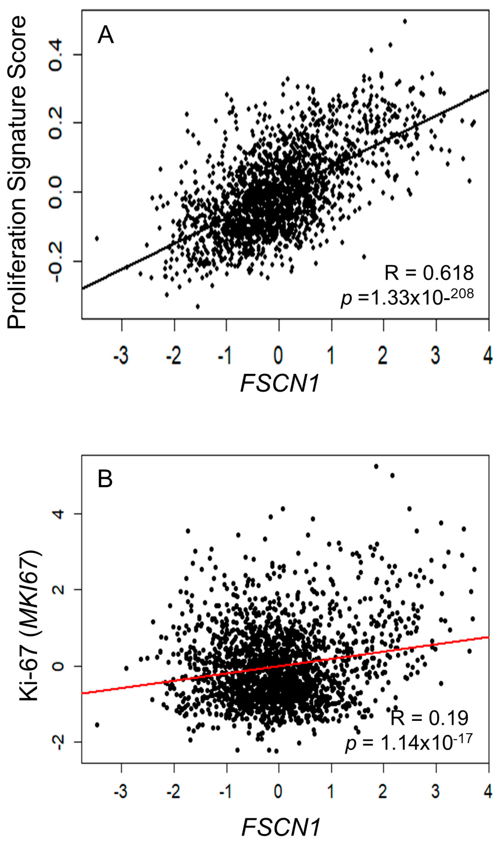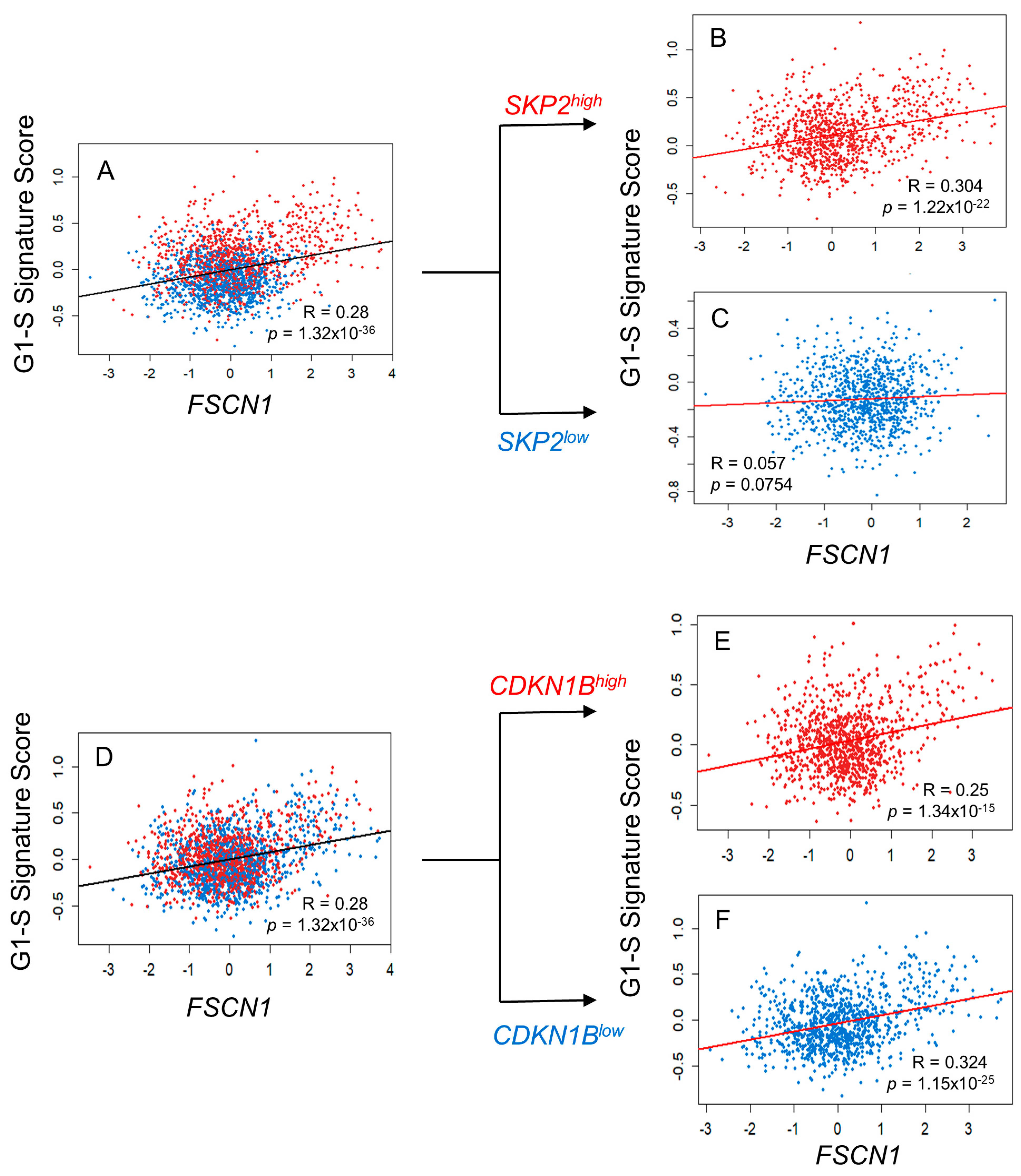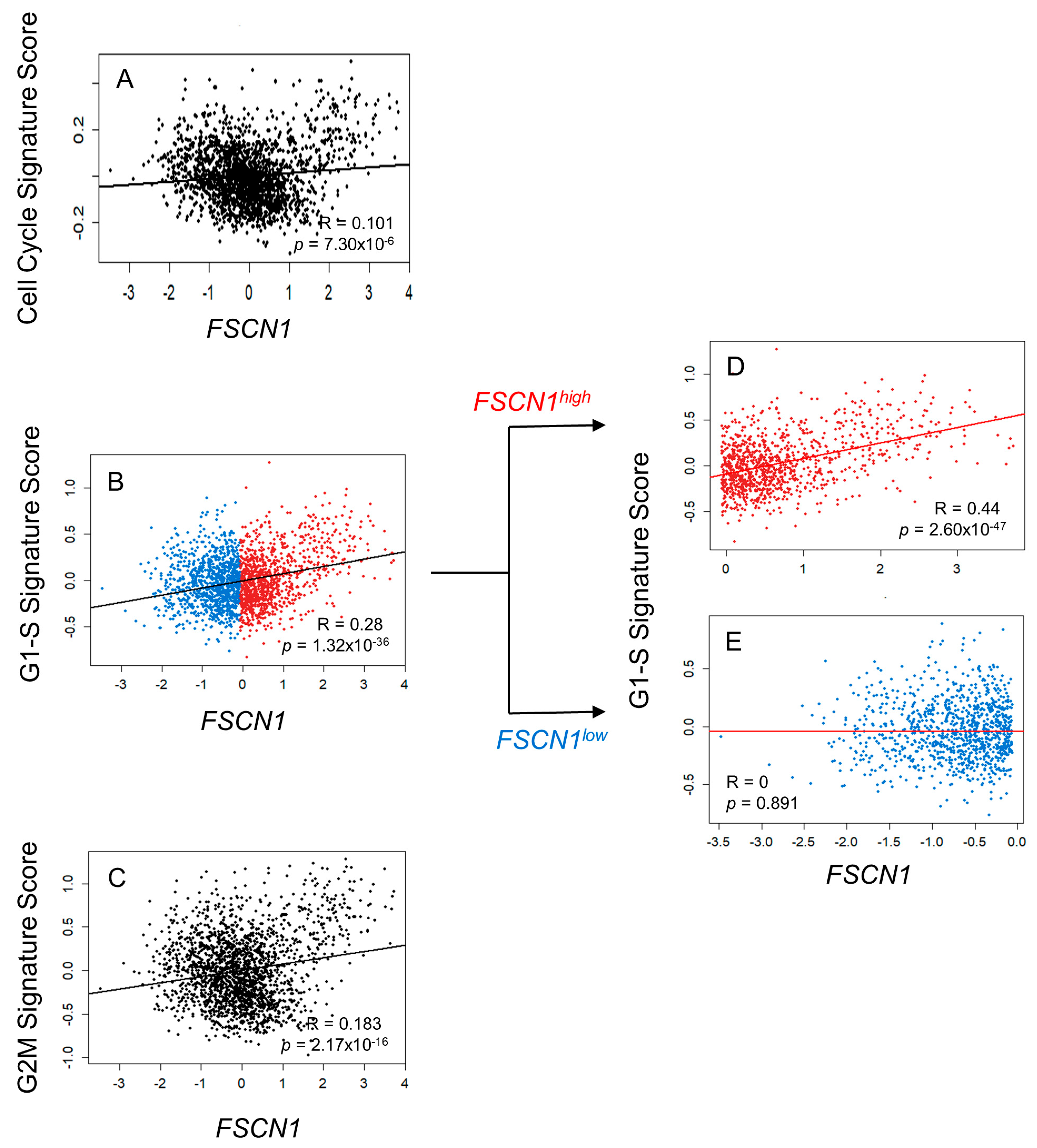 3.3. FSCN1 Expression in BC Patient Samples Correlates with G1-S Signature Score