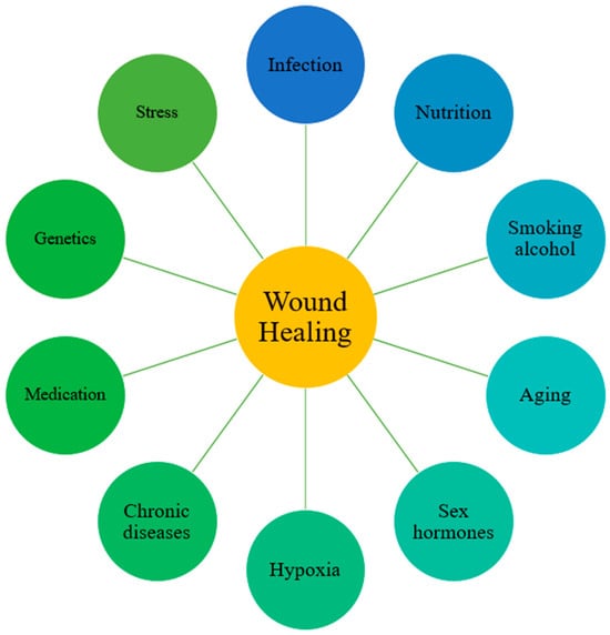Factors that affect wound healing. Common situations that delay skin wound healing. Reprinted from Ref. [].
