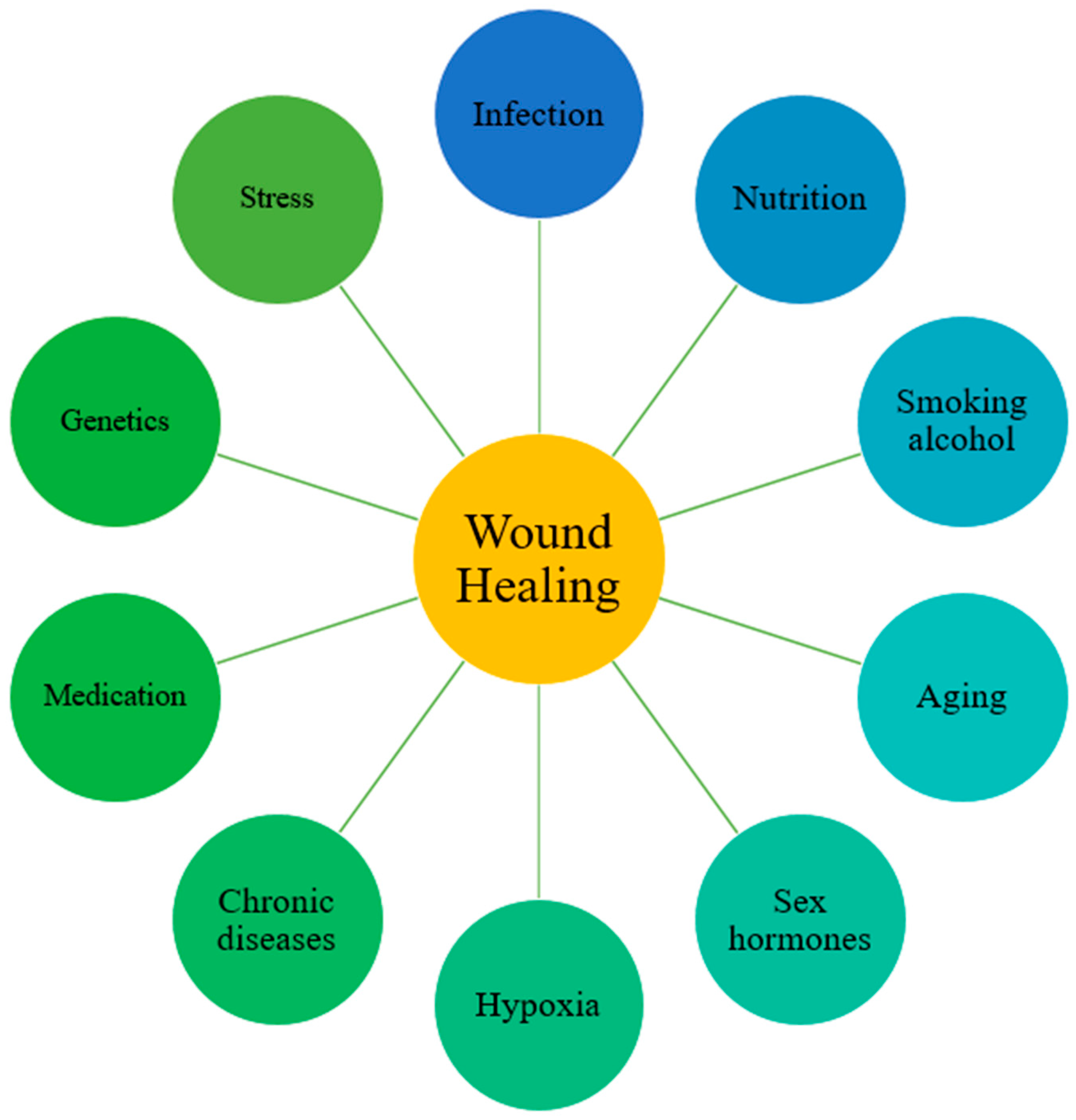 - Gushiken, L.F.S.; Beserra, F.P.; Bastos, J.K.; Jackson, C.J.; Pellizzon, C.H. Cutaneous Wound Healing: An Update from Physiopathology to Current Therapies. Life 2021, 11, 665. [Google Scholar] [CrossRef] [PubMed]