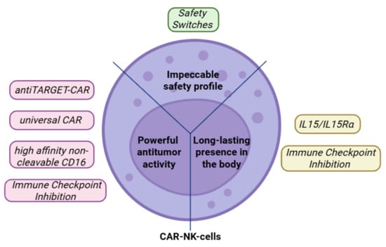 • The strategy for creating a next-generation CAR-NK cell product should adhere to the following principles simultaneously: increased antitumor cytotoxicity, increased proliferative activity, and continued safety for patients.