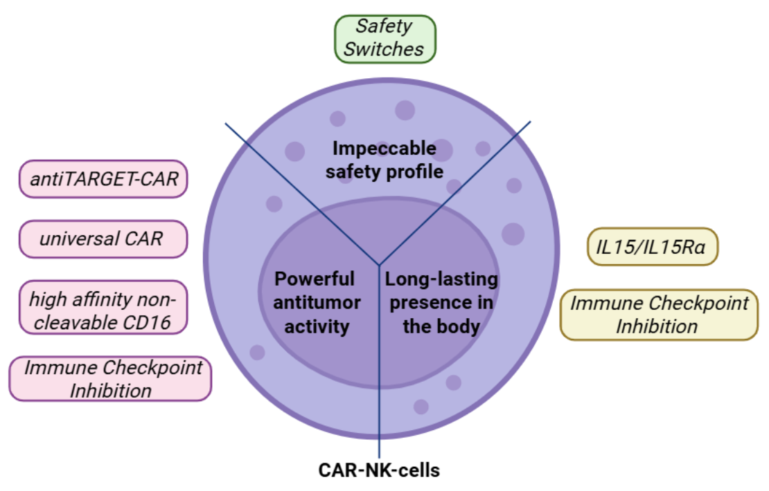 • To ensure the safety of CAR-NK cells for humans, they can be modified by safety switch.