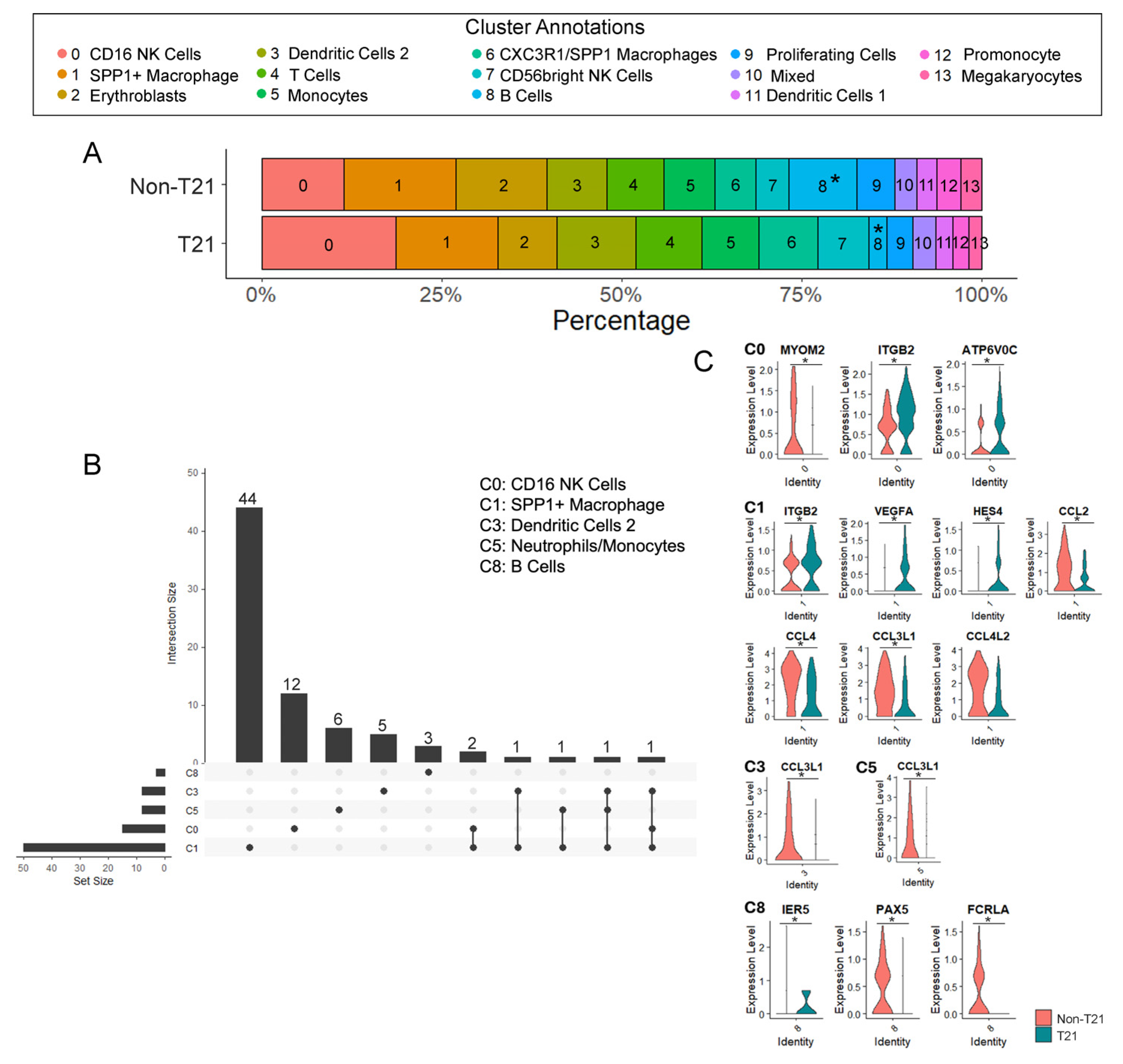 3.1. Immune Cell Populations in T21 Prenatal Lungs