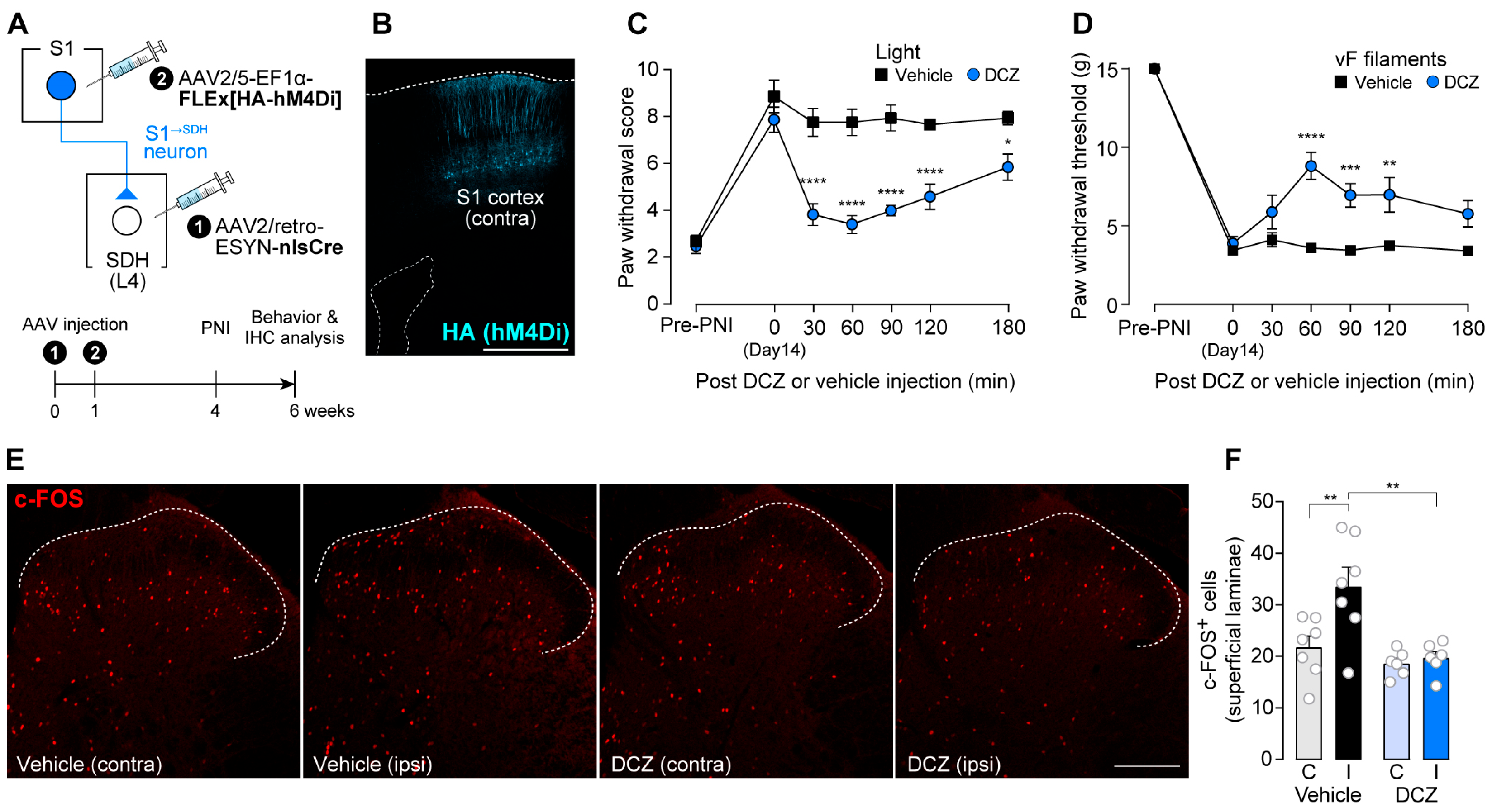 - Descending neuronal signaling from the primary somatosensory (S1) cortex to the spinal dorsal horn (SDH) directly contributes to Aβ fiber-derived neuropathic allodynia in male rats.