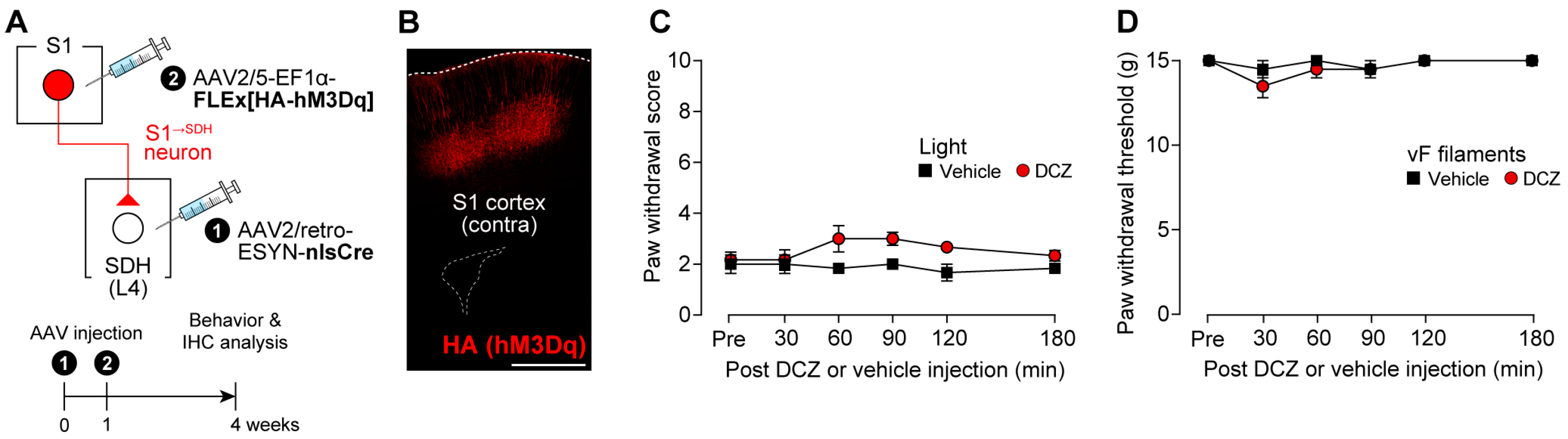 2.7. Chemogenetic Manipulation of S1→SDH Neurons
