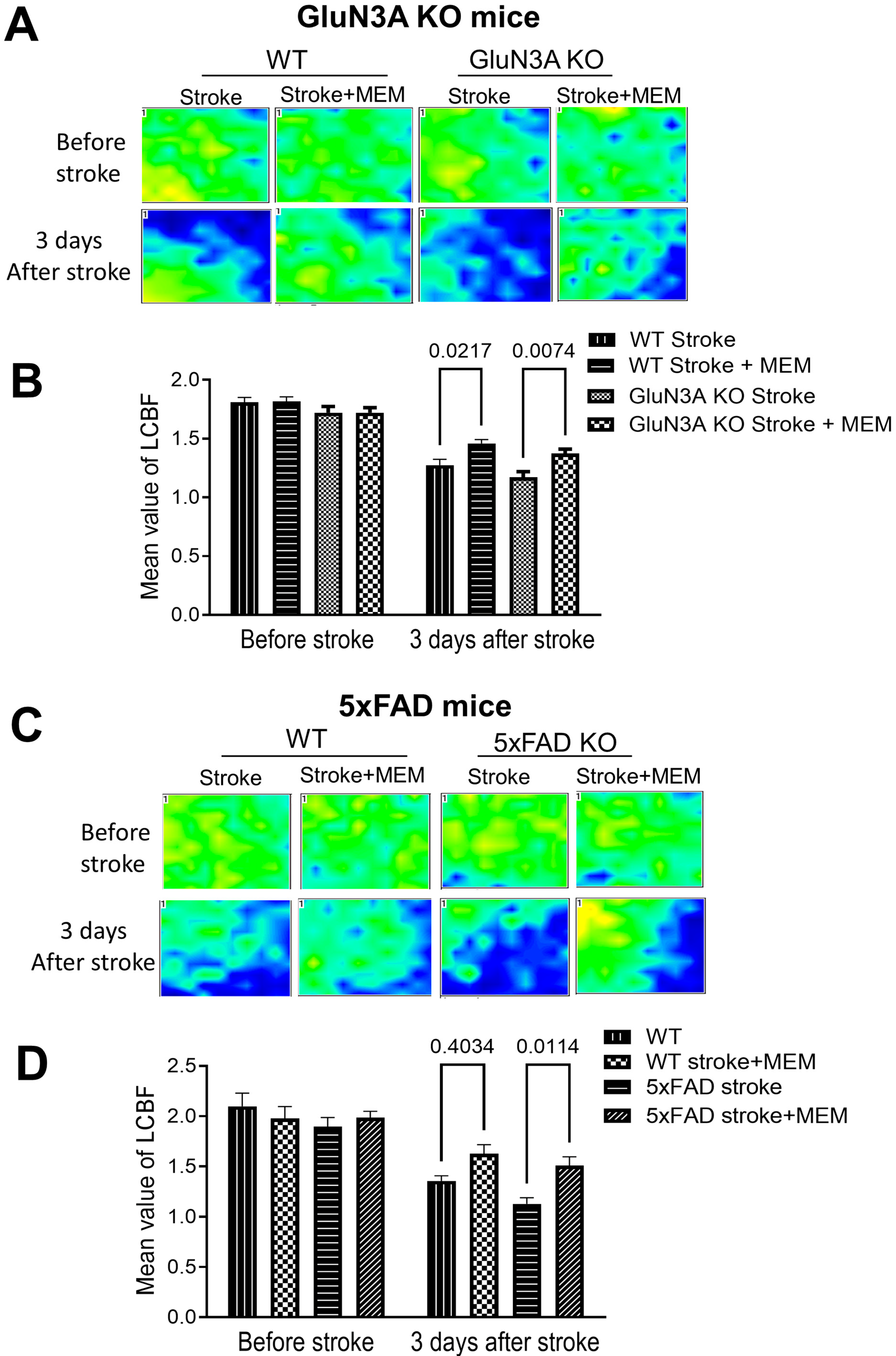 3.1. Preconditioning Effects of Early MEM Treatment Against Ischemic Stroke in Different AD Mouse Models
