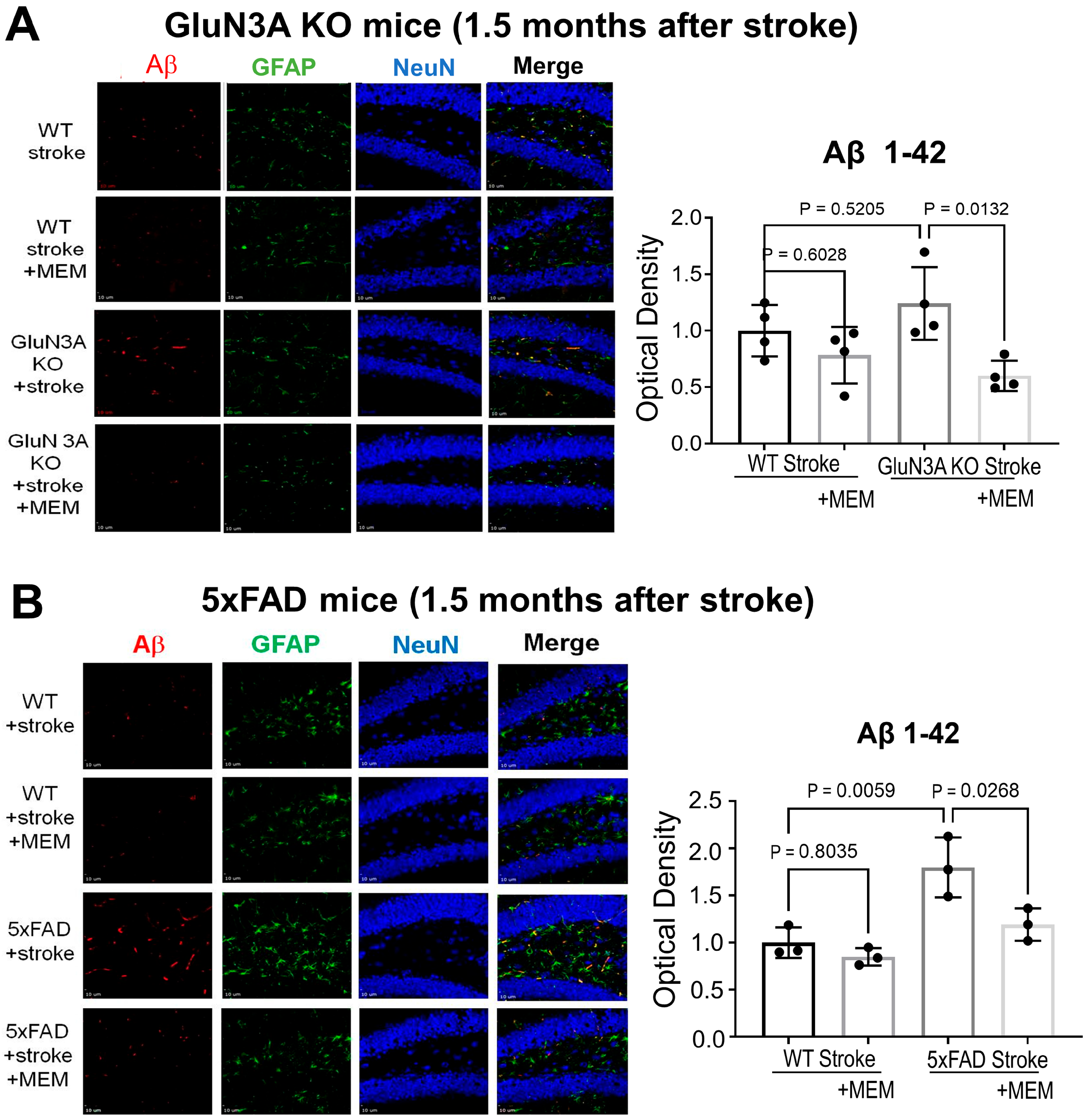 - Gu, X.; Yu, S.P.; Jiang, M.Q.; Zhong, W.; Sastry, A.; Wei, L. Preventive Memantine Treatment at the Preclinical Stage in the Alzheimer’s Disease Model of the 5xFAD Mouse. Neurosci. Bull. 2025; online ahead of print. [Google Scholar] [CrossRef] [PubMed]