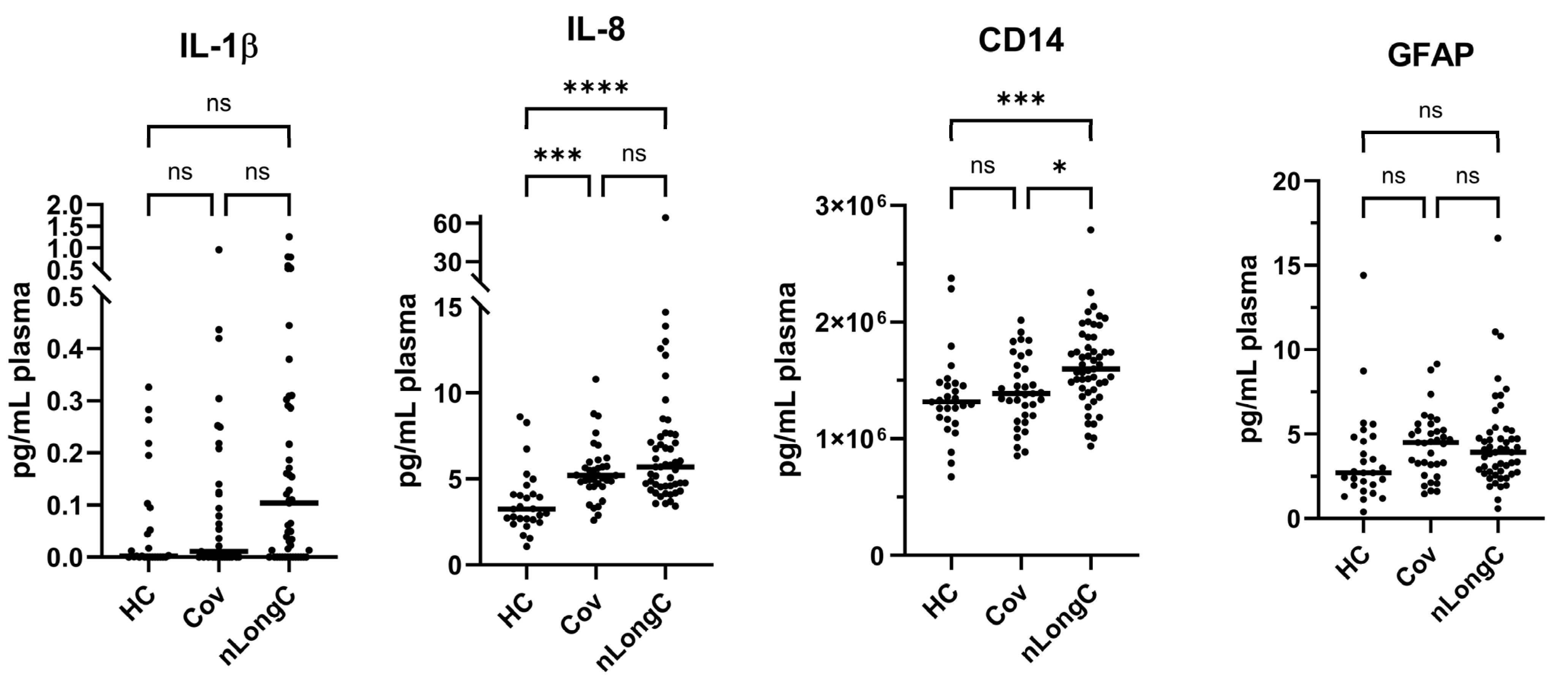 Tang, N.; Ford, J.M.; Dal Bon, K.; Pulliam, L. Chronic Inflammation and Altered Immune Responses in LongCOVID Associate with Neurological Manifestations and Accelerated Aging. Cells 2025, 14, 1875. https://doi.org/10.3390/cells14231875