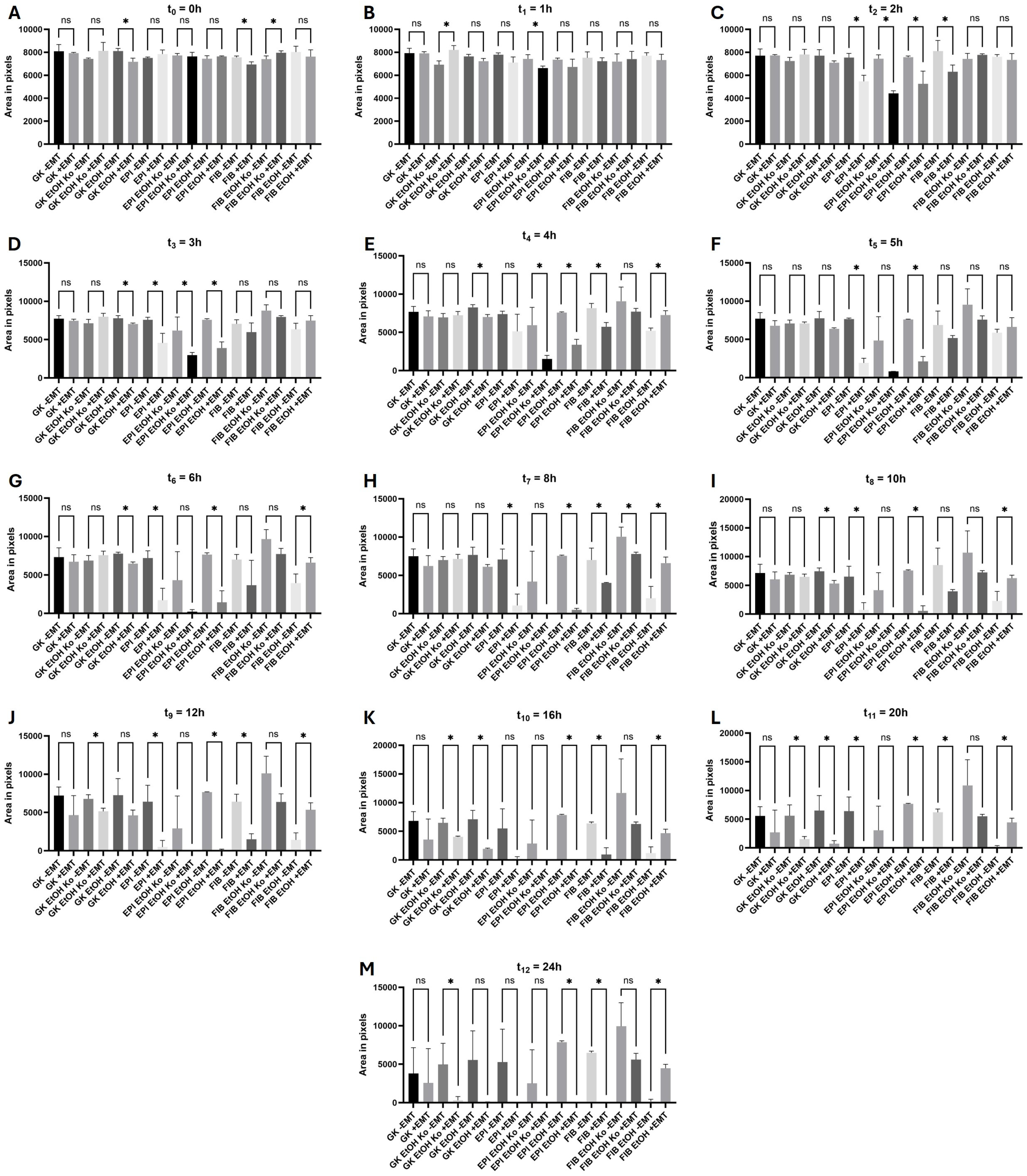 3.7. Cellular ROS Production Increased in Response to EtOH and “+EMT” Treatment