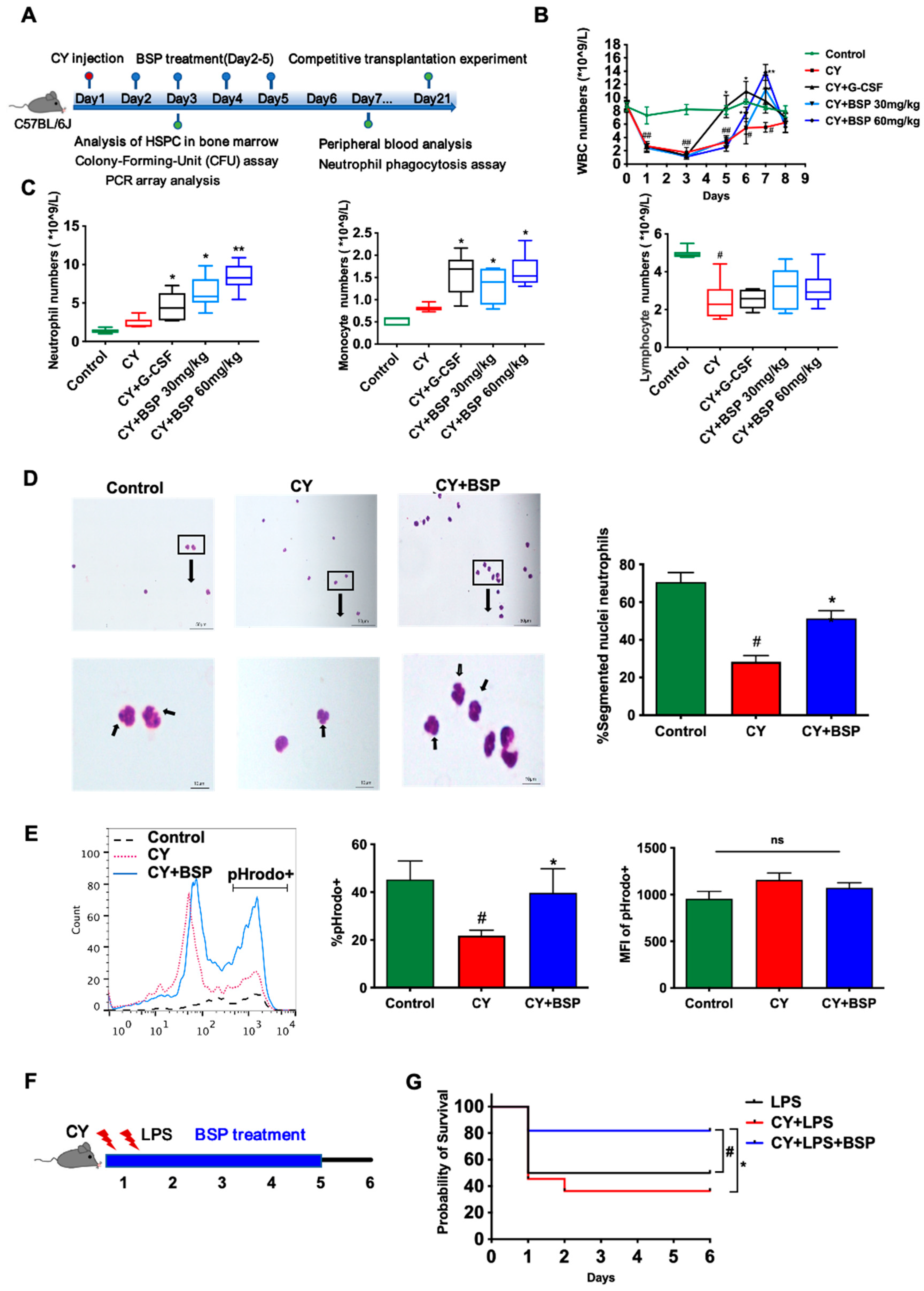 3.1. BSP Accelerates Recovery of Peripheral Blood Cells by Promoting Functional Neutrophil Production in Neutropenia Mice