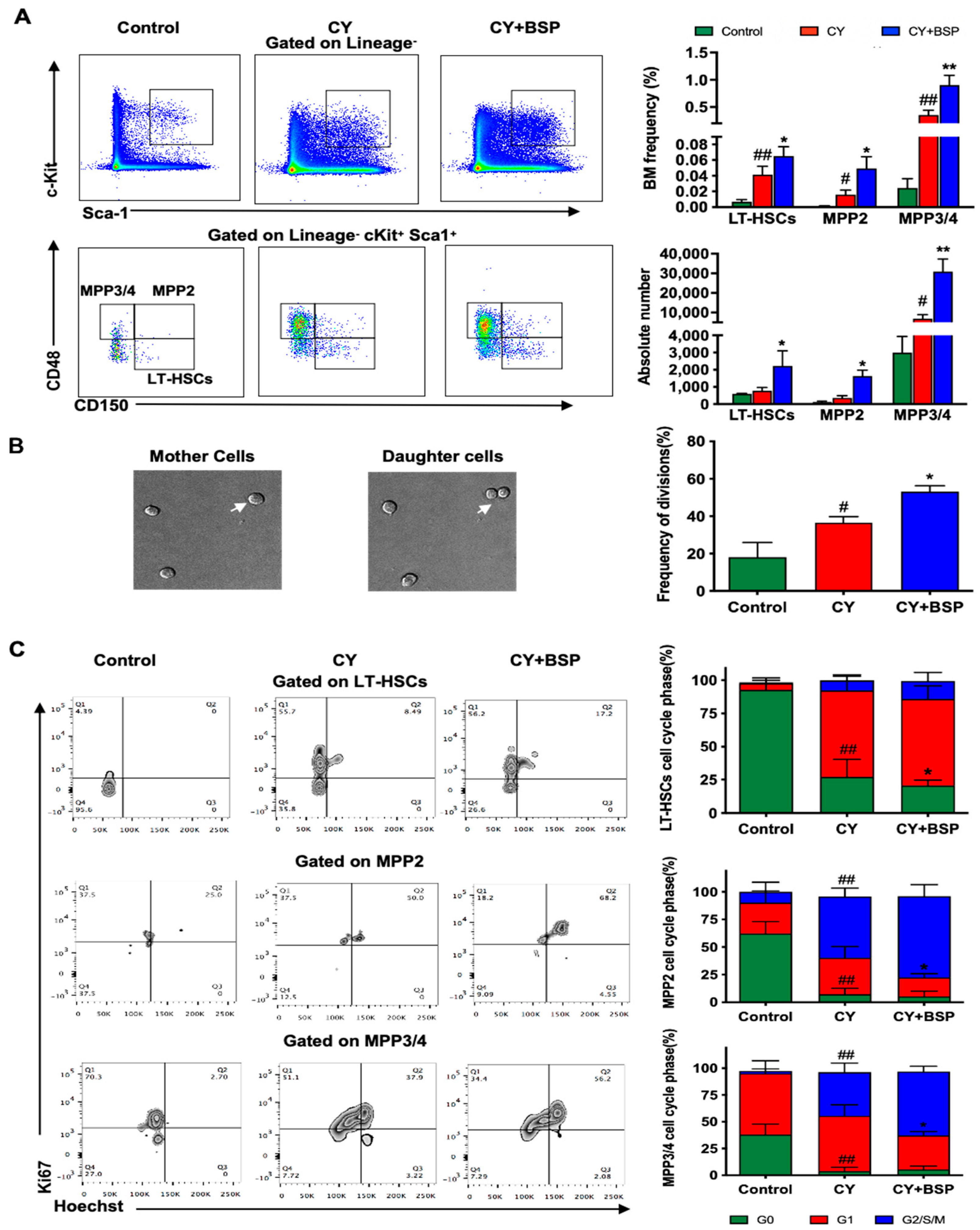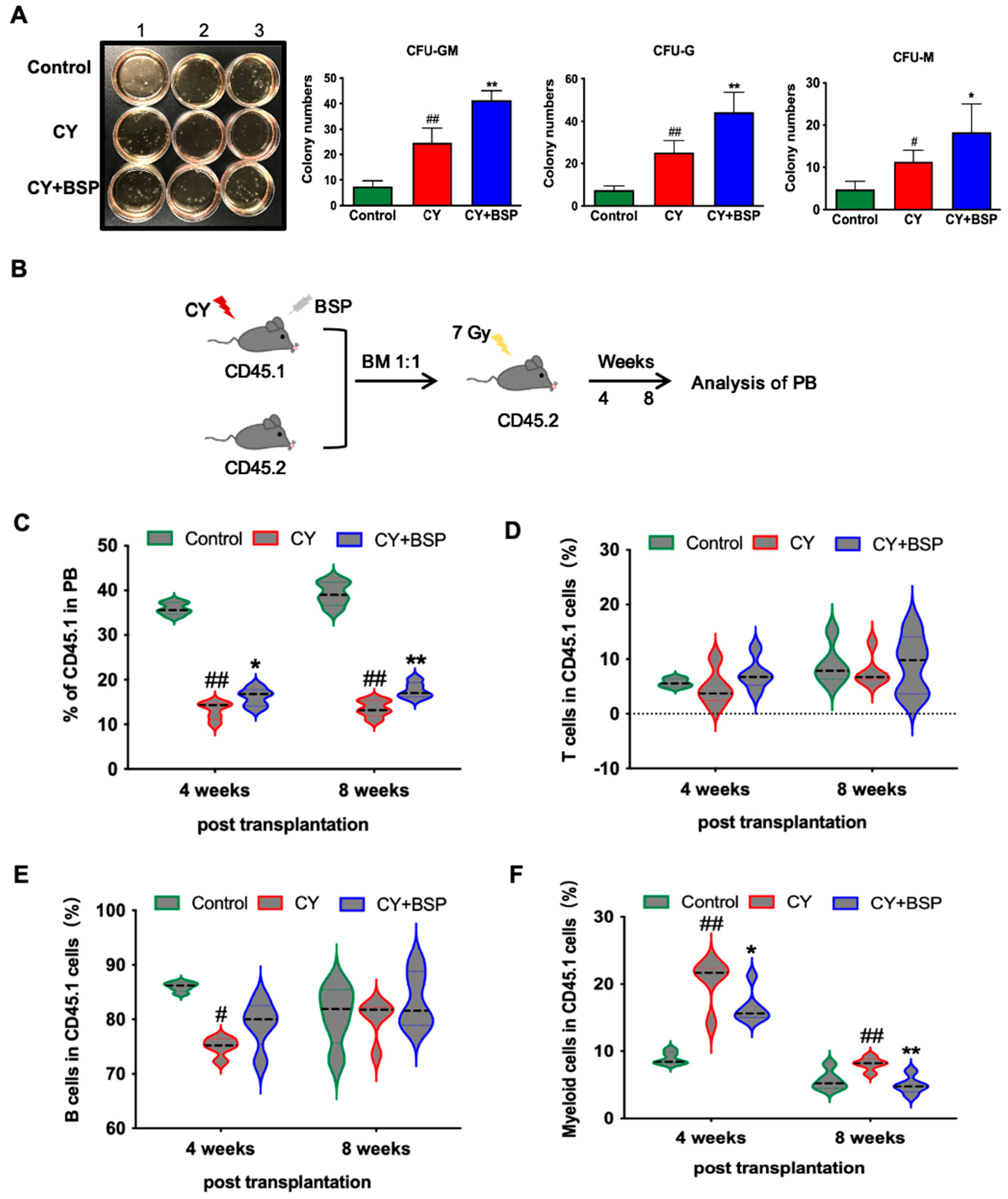 3.3. BSP Enhances the Hematopoietic Functional Capacity of HSPCs
