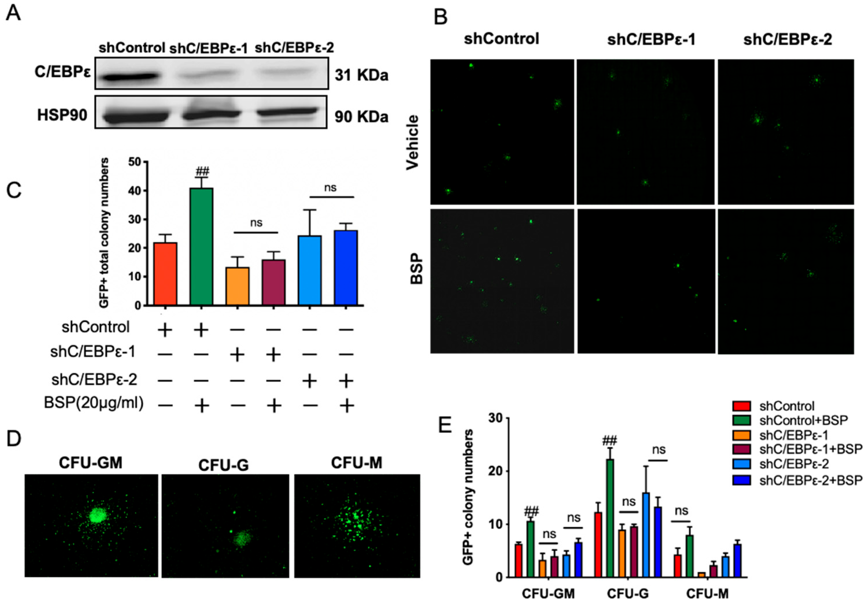 3.4. BSP Upregulates C/EBPε Expression in HSPCs