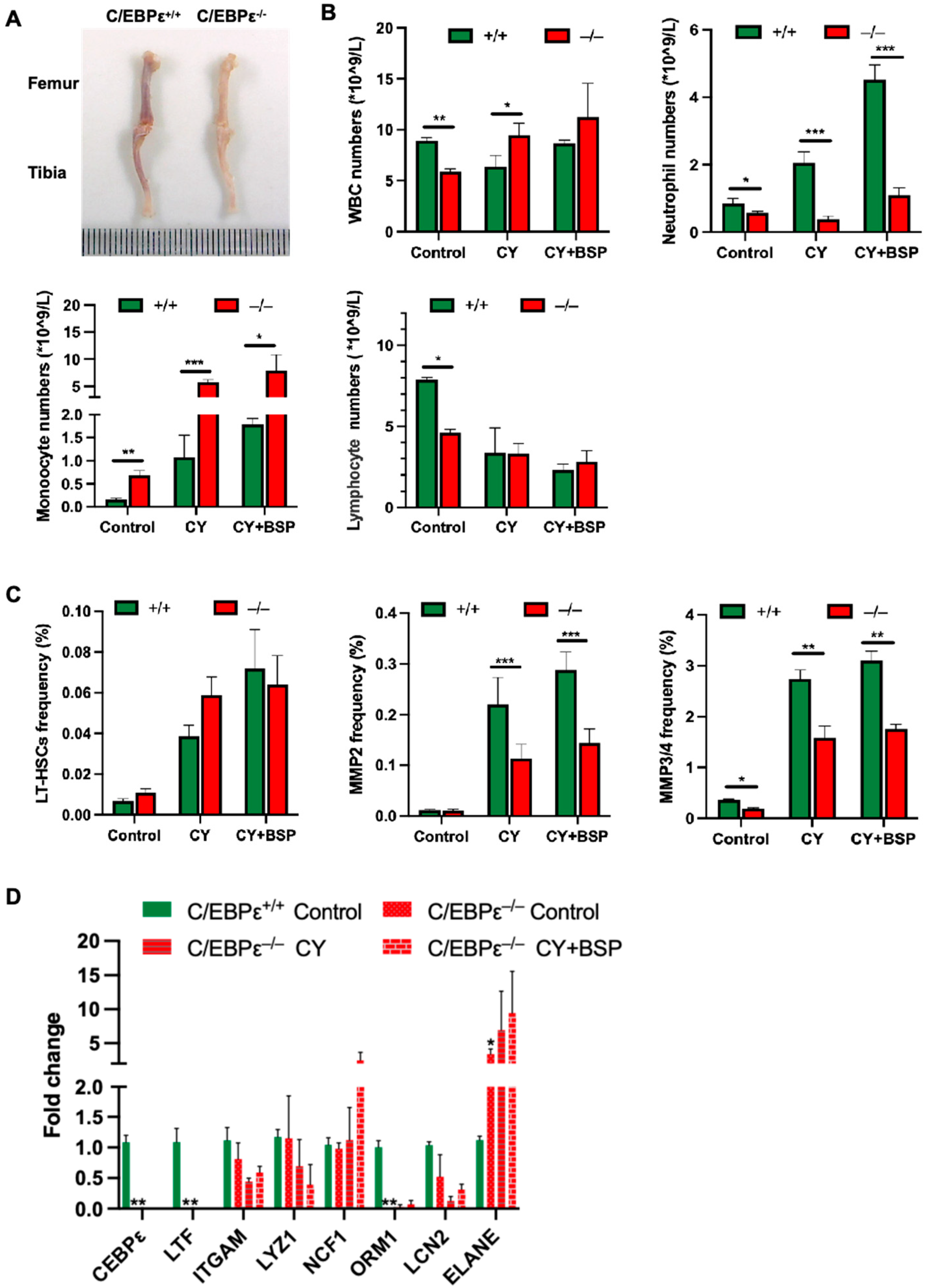 3.6. C/EBPε Is Essential for BSP-Mediated Hematopoietic Reconstitution In Vivo