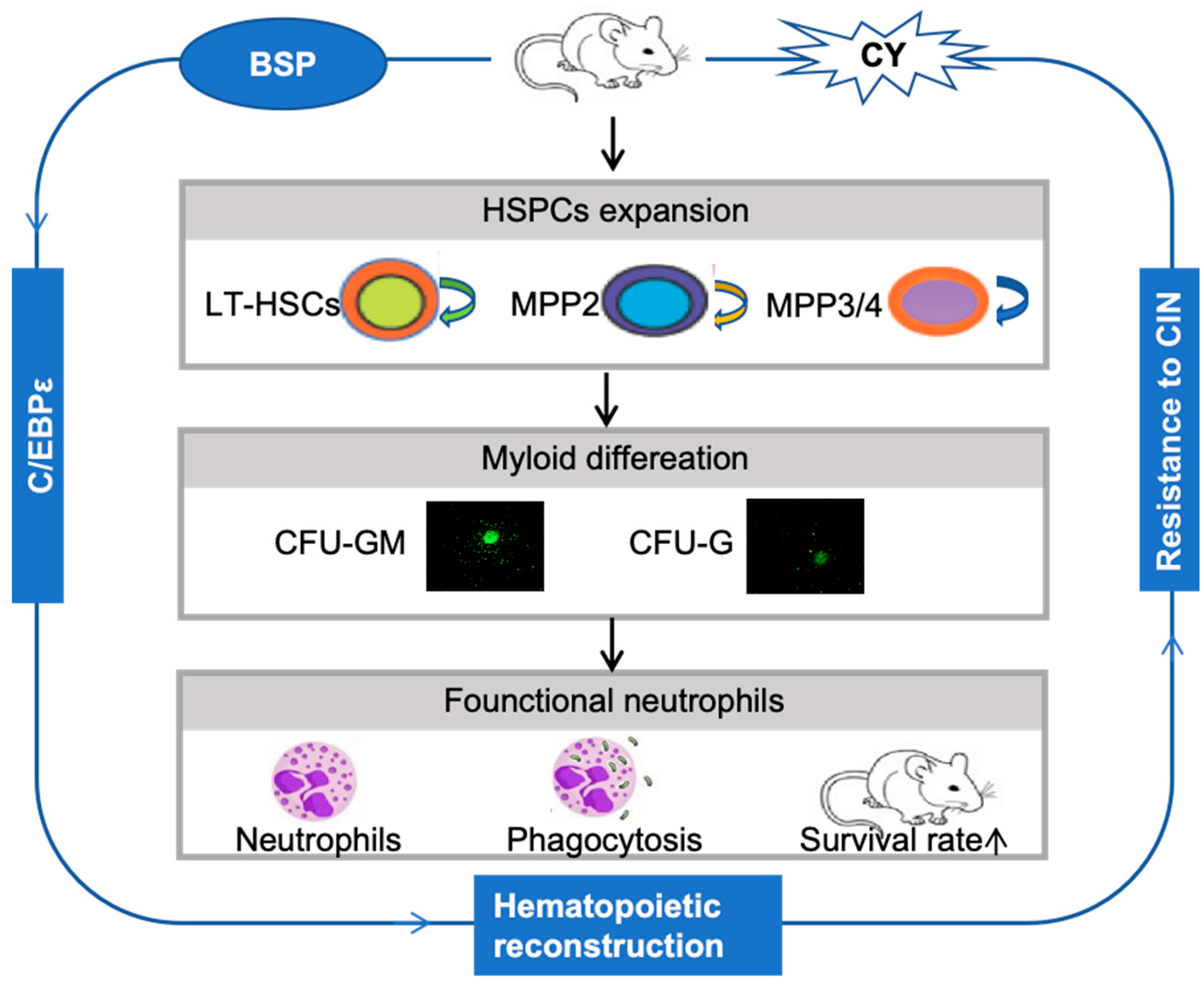 Cui, Y.; Luo, Y.; Zhang, C.; Shan, D.; Feng, Y.; Yang, S.; Chen, L.; Yu, J. Bletilla Striata Polysaccharide Alleviates Neutropenia by Promoting C/EBPε-Dependent Hematopoietic Reconstitution. Cells 2025, 14, 1888. https://doi.org/10.3390/cells14231888