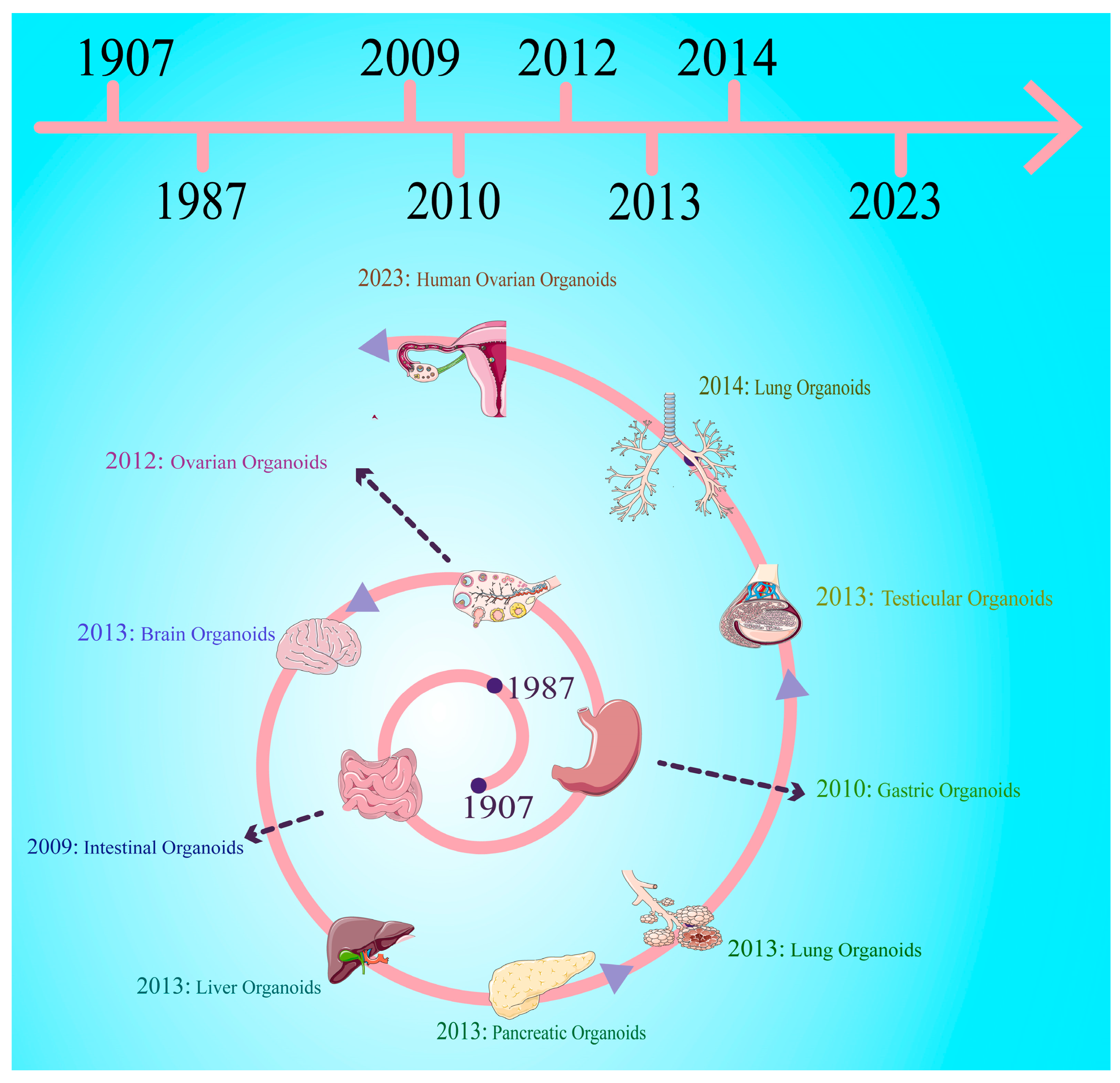 - Tang, X.; Wu, S.; Wang, D.; Chu, C.; Hong, Y.; Tao, M.; Hu, H.; Xu, M.; Guo, X.; Liu, Y. Human organoids in basic research and clinical applications. Signal Transduct. Target. Ther. 2022, 7, 168. [Google Scholar] [CrossRef] [PubMed]