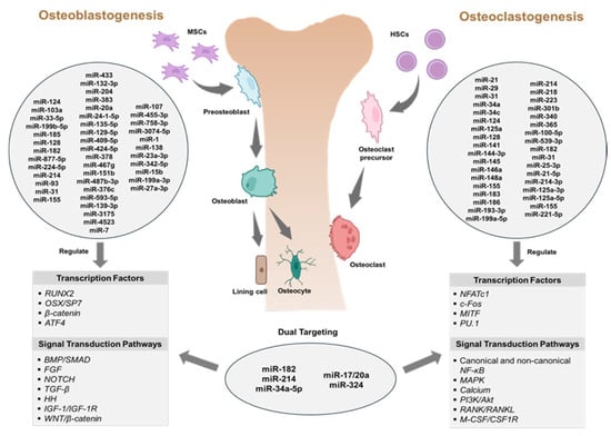 3.3. miRNAs Regulating Both Osteoclasts and Osteoblasts
