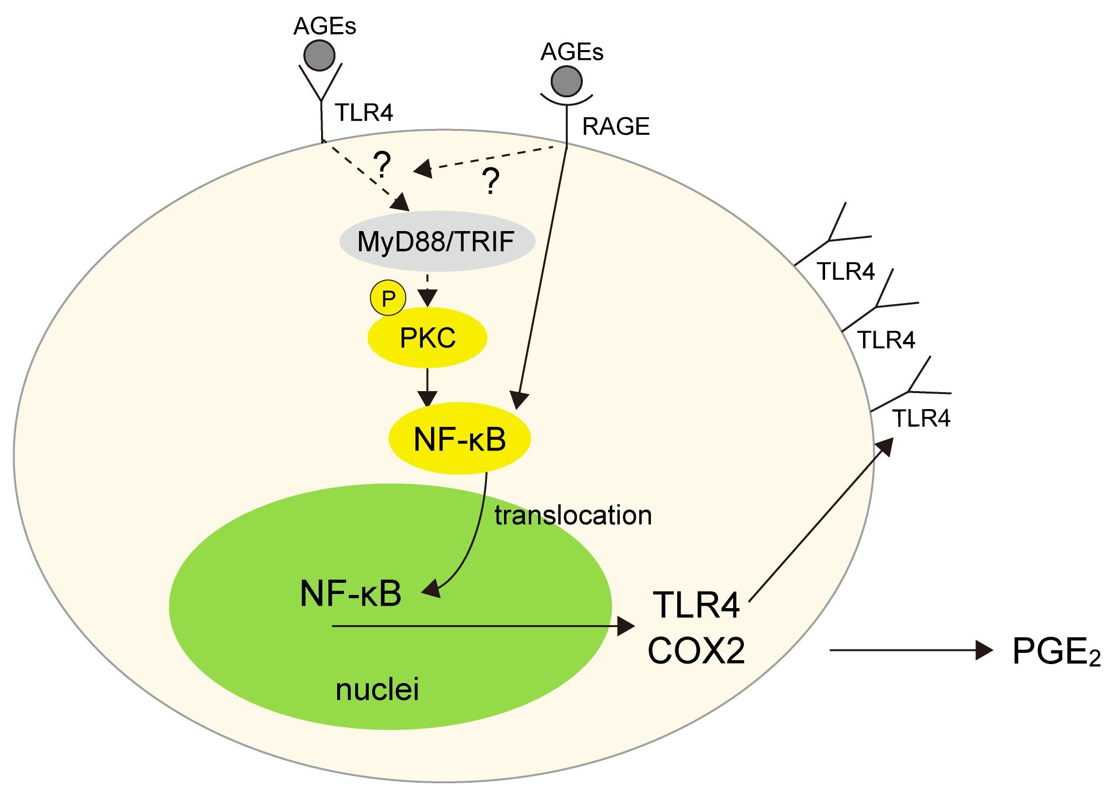 Advanced Glycation End Products Promote PGE2 Production in Ca9-22 Cells via RAGE/TLR4-Mediated PKC–NF-κB Pathway