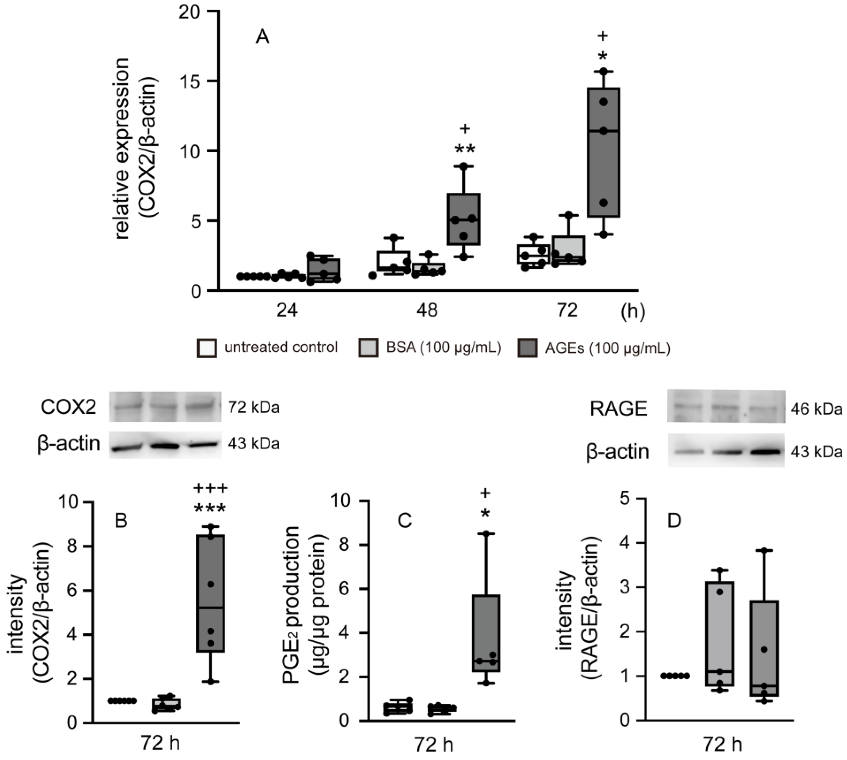 3.1. AGEs Increased COX2 and PGE2 Production in Ca9-22 Cells