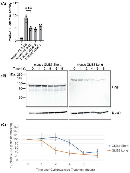 3.3. The Short Mouse Isoform of GLIS3 Exhibits Greater Activity and Stability