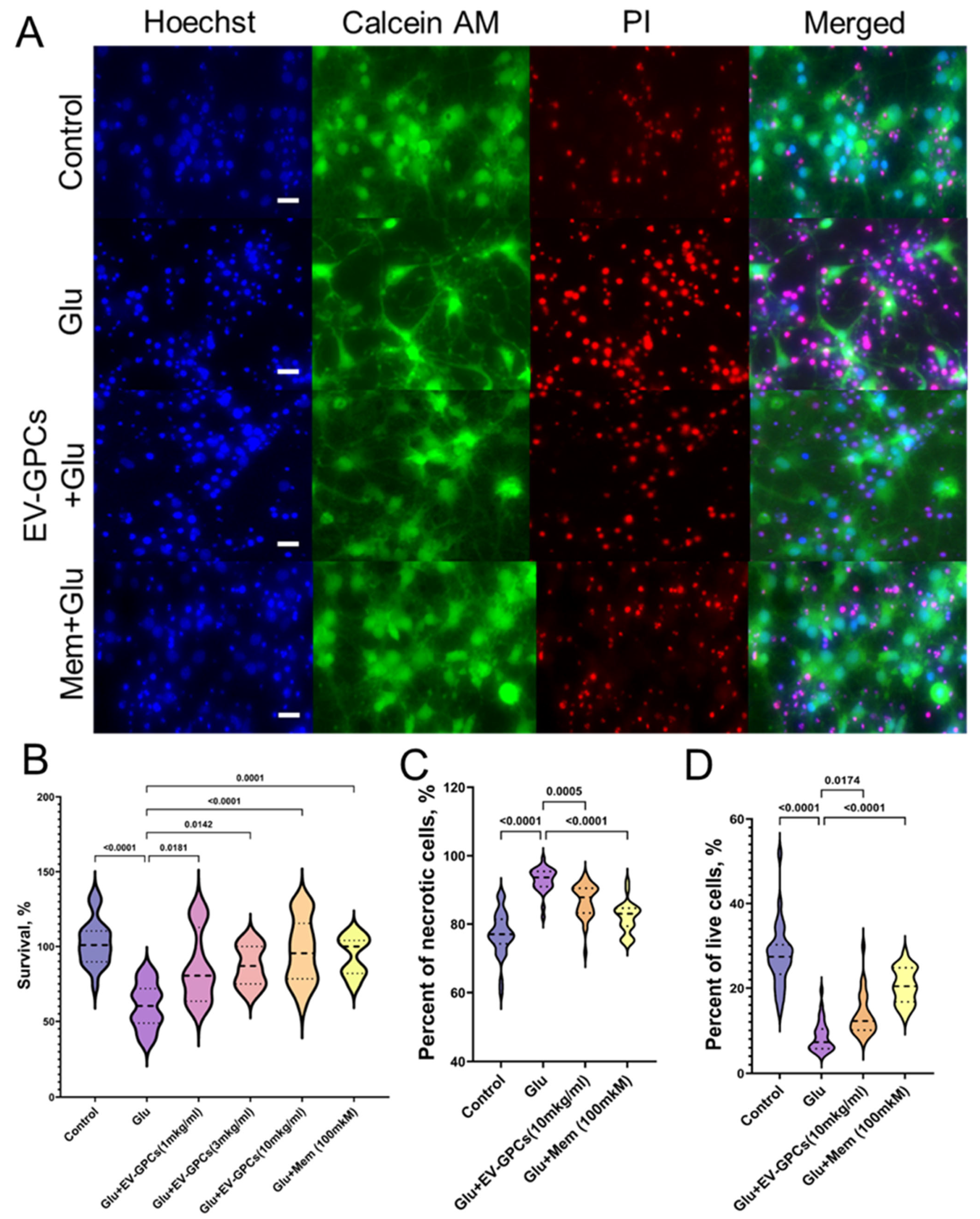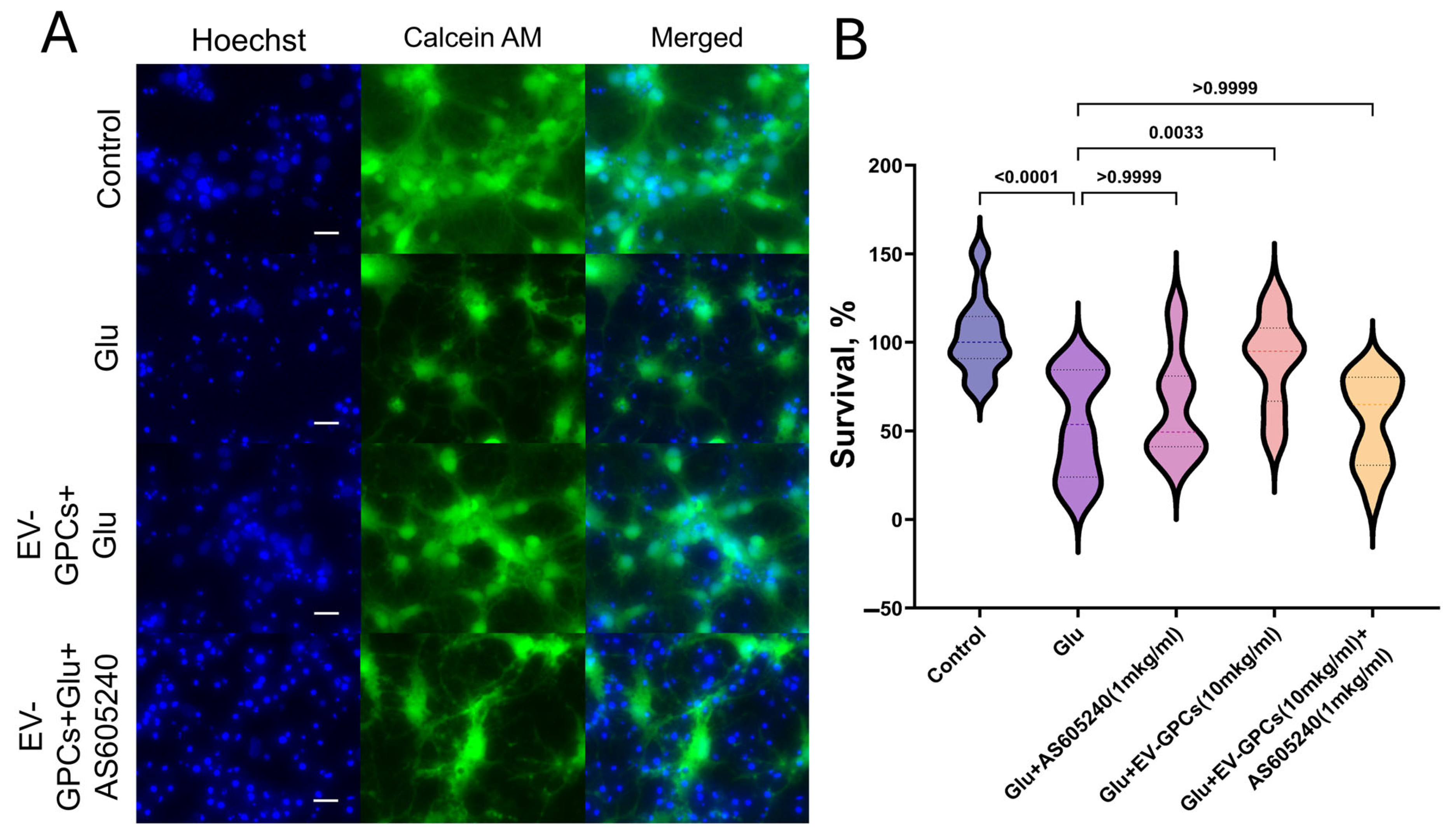3.9. The Effect of EV-GPCs on the Gene Expression Profile of Neuroglial Cultures Under Glutamate Exitotoxicity