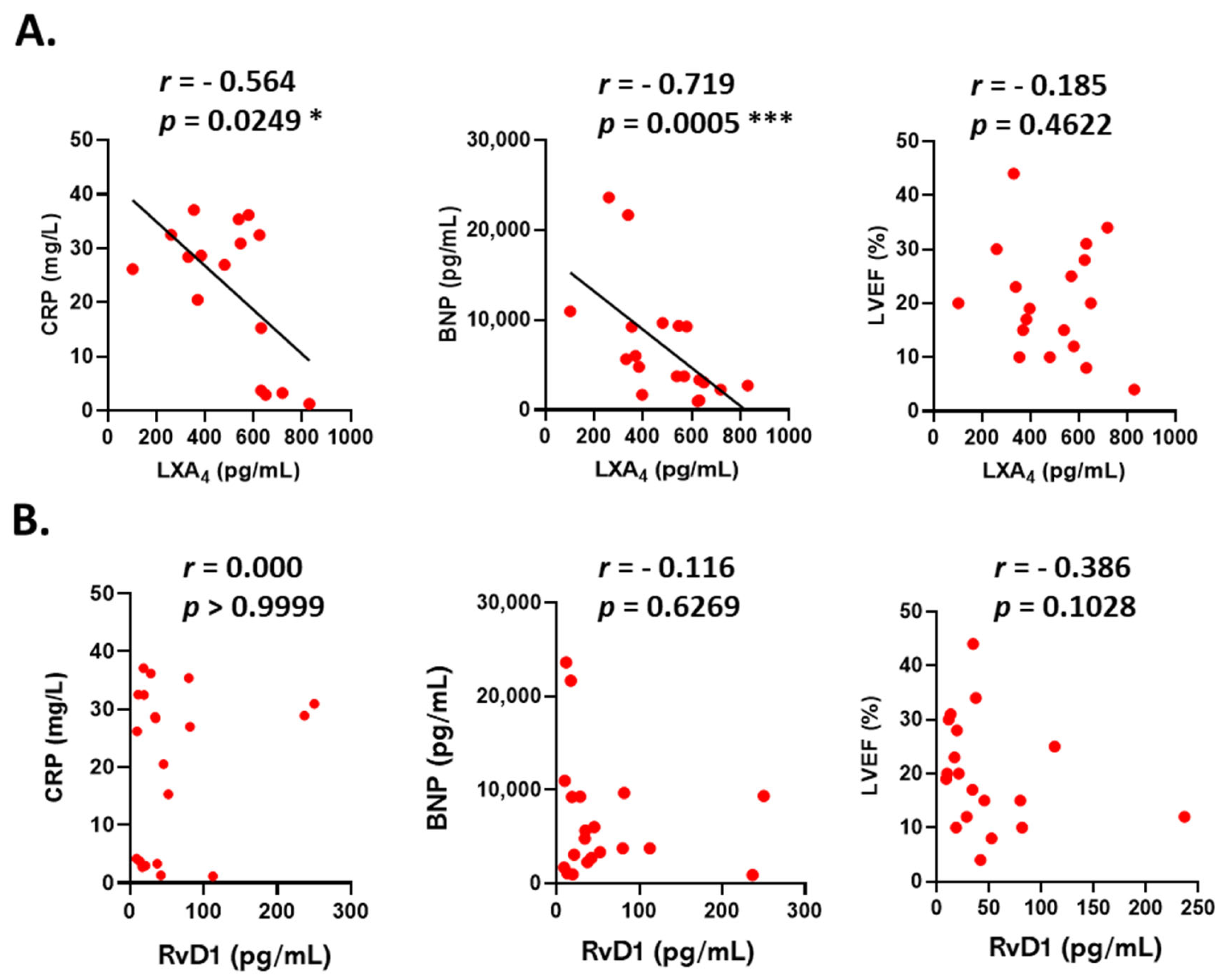 - Chen, R.; Li, J.; Zhou, J.; Wang, Y.; Zhao, X.; Li, N.; Liu, W.; Liu, C.; Zhou, P.; Chen, Y.; et al. Prognostic impacts of Lipoxin A4 in patients with acute myocardial infarction: A prospective cohort study. Pharmacol. Res. 2023, 187, 106618. [Google Scholar] [CrossRef]