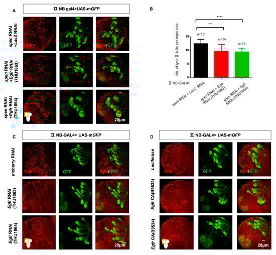 3.6. The EGFR Signaling Pathway Participates in the Spen-Mediated Maintenance of Type II NBs