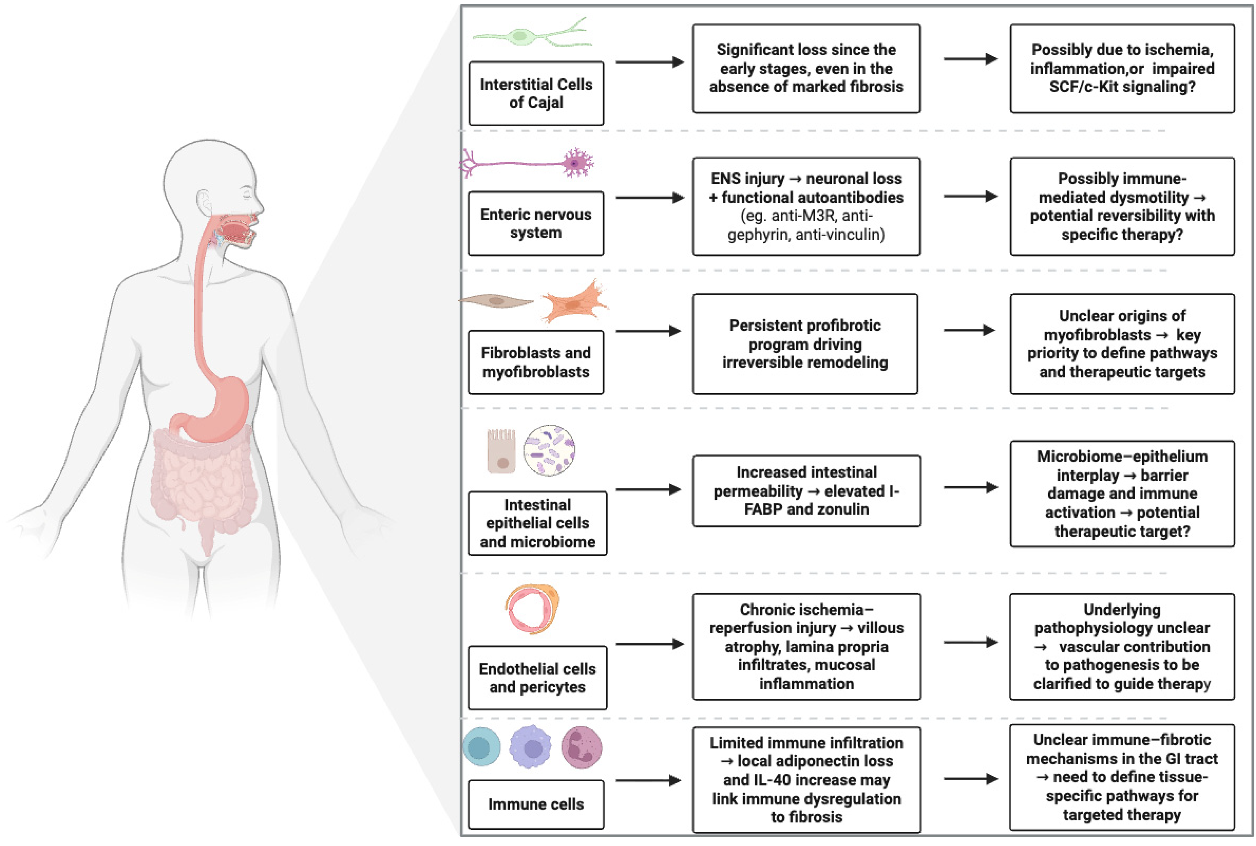 Peretti S, Bonomi F, Bandini G, Barbetta C, Hughes M, Del Galdo F, Matucci Cerinic M, McMahan ZH, Bellando Randone S. Cellular Players in Gastrointestinal Involvement of Systemic Sclerosis: Insights into Pathogenesis. Cells. 2025; 14(23):1930. https://doi.org/10.3390/cells14231930