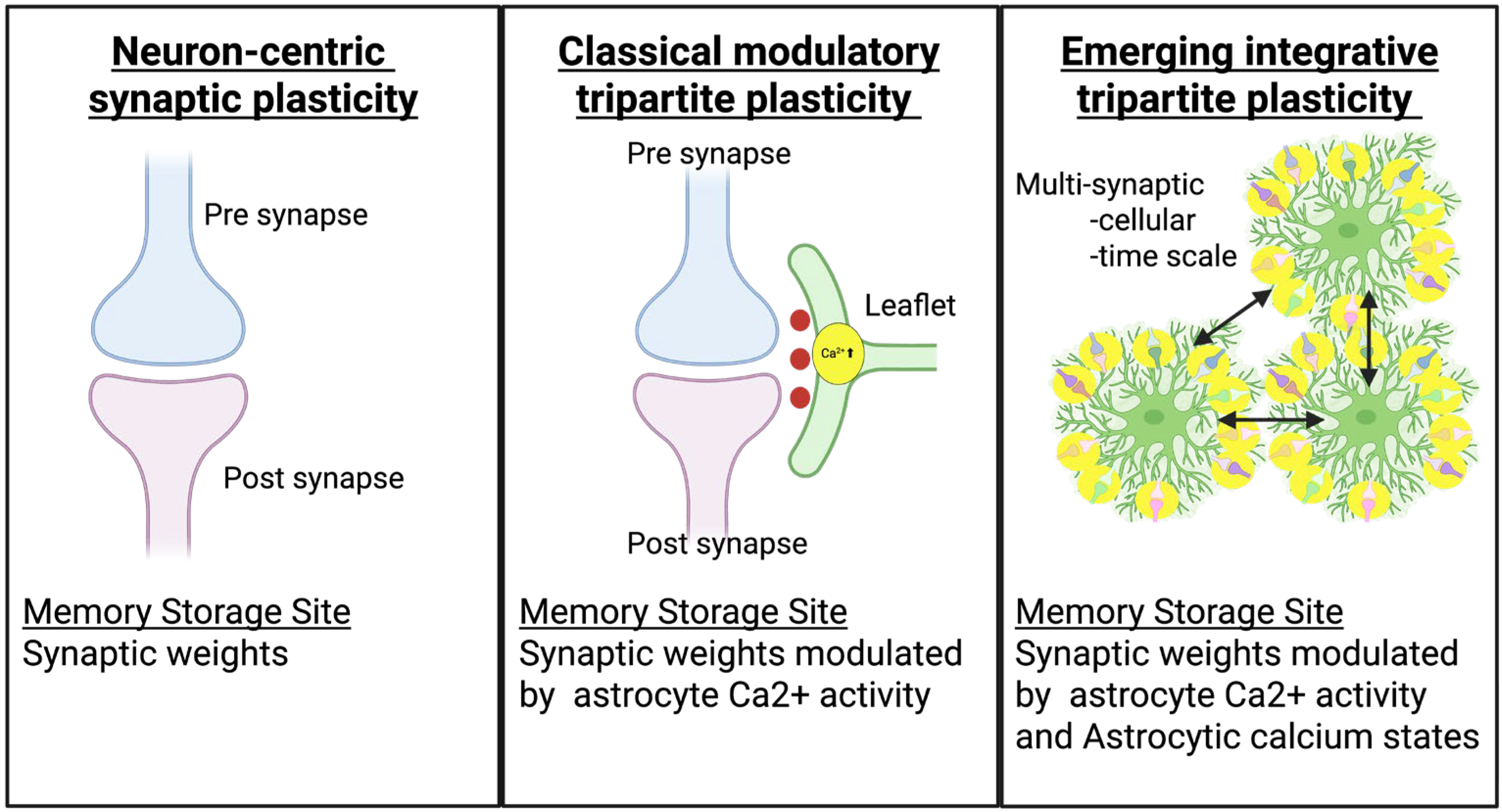 | Dimension | Neuron-Centric Synapse Plasticity | Classical Tripartite Synapse Plasticity | Emerging Integrative Tripartite Synapse Plasticity |