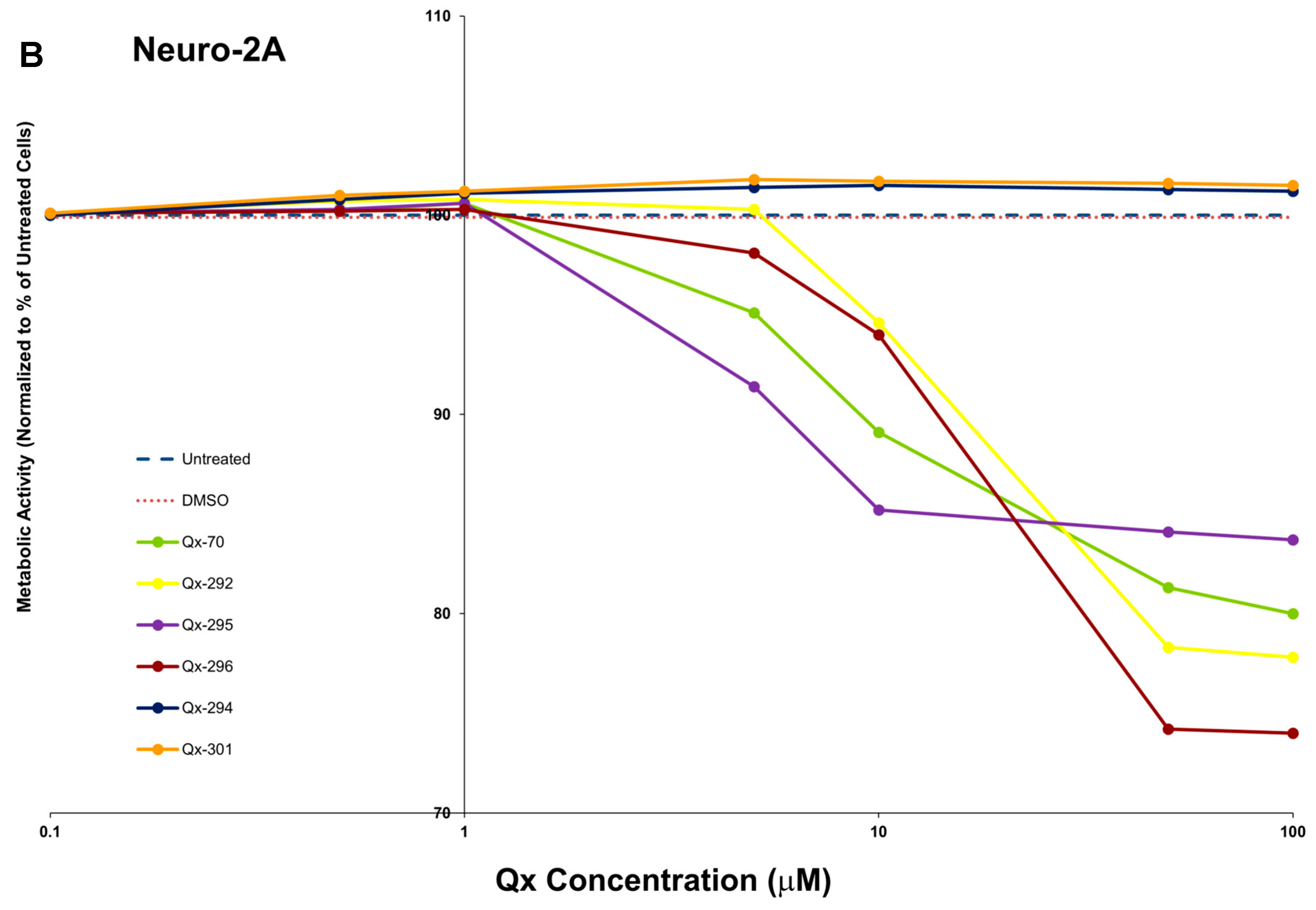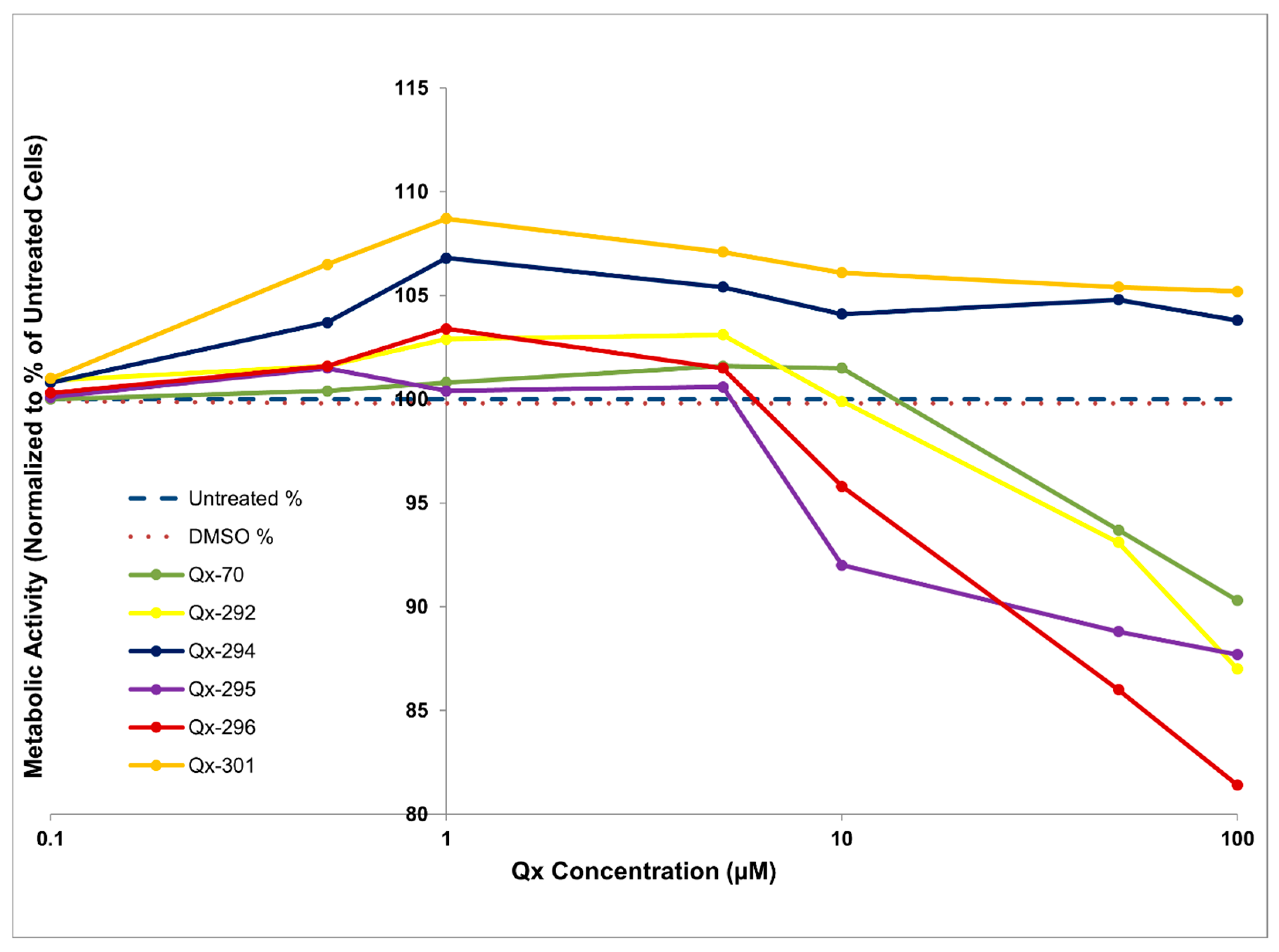| Qx-294 | 551 ± 24 | 3.5 ± 3.0 | 88.5 ± 4.0 | 57.2 ± 4.7 | >20 |