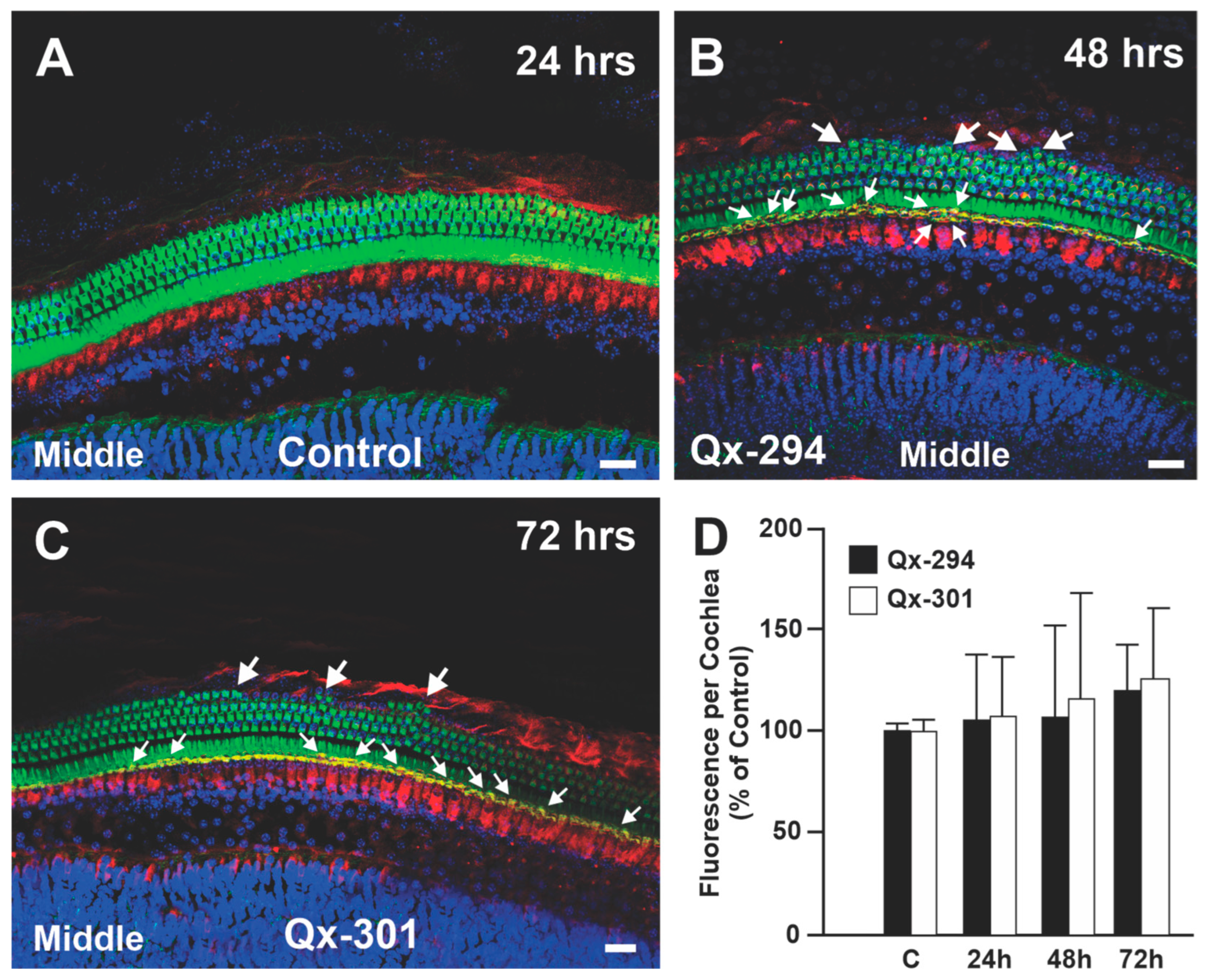 3.5. The Effect of Qx-294 and Qx-301 Treatments in the Mouse Cochlea